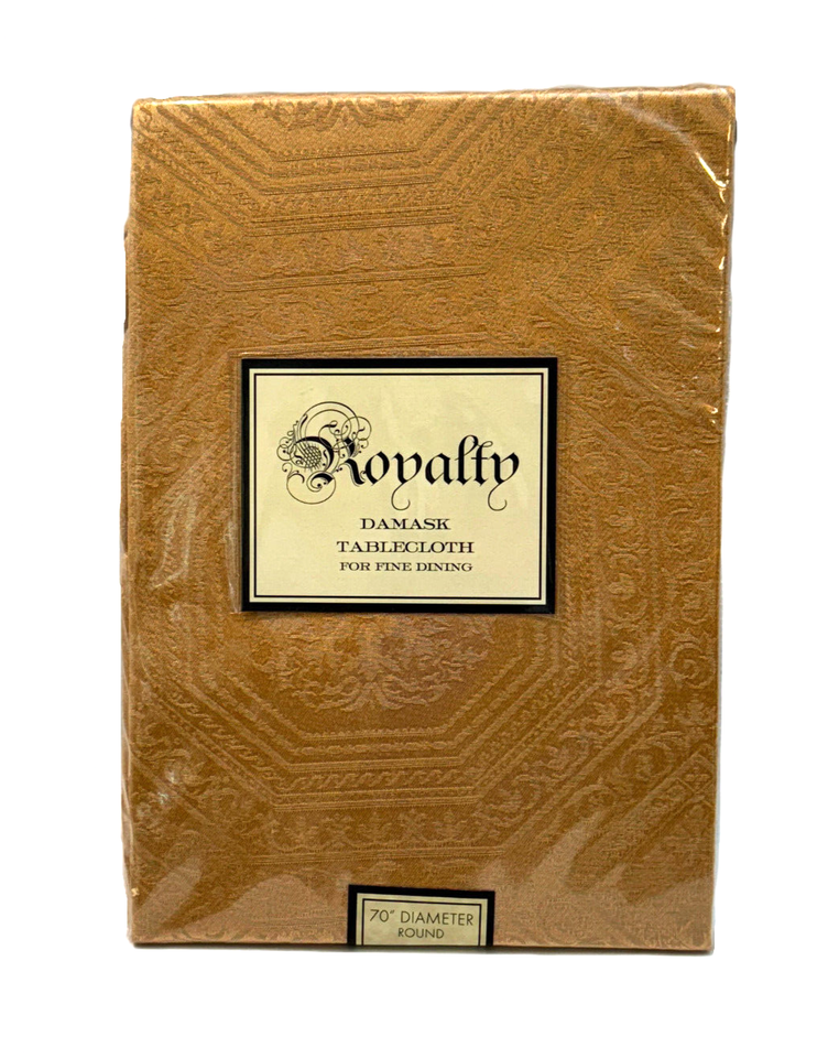 Royalty Damask Tablecloth 70" Round Gold Vintage 2008 Cotton Blend Benson Mills