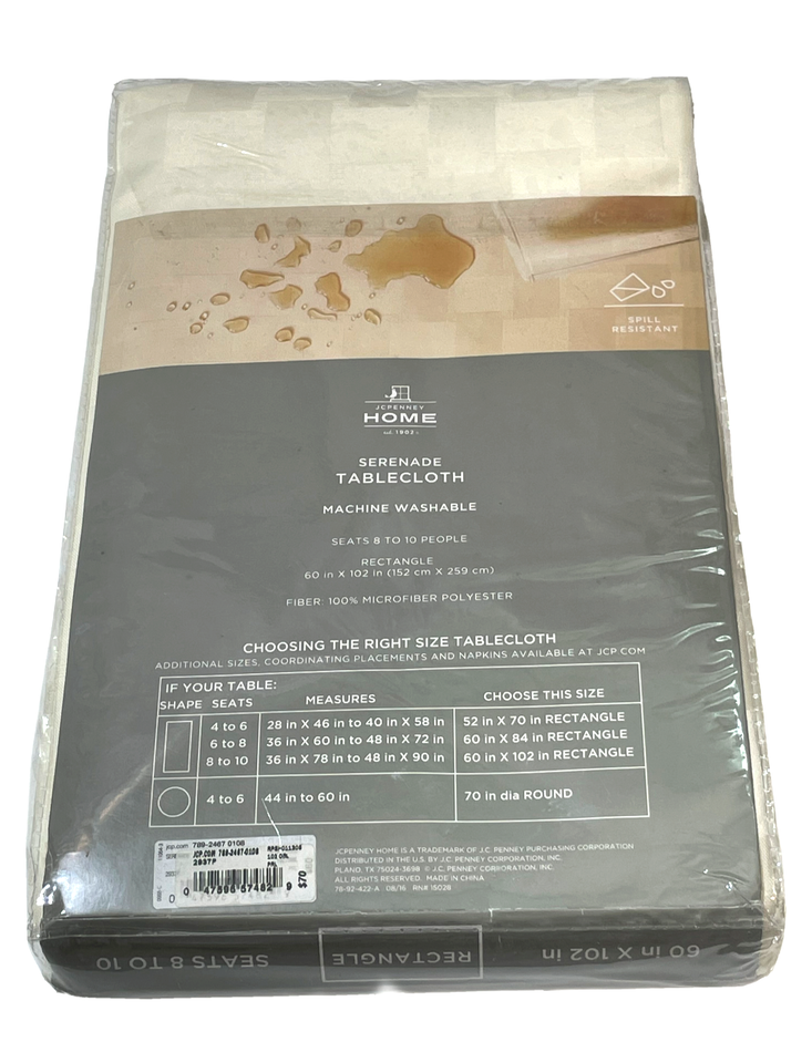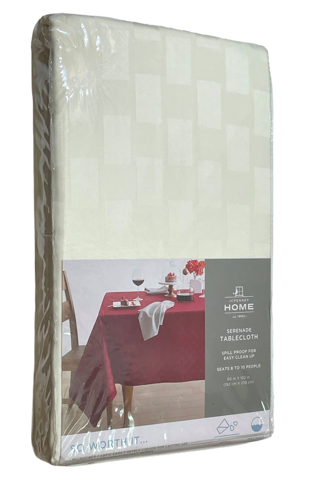 JC Penney Home Serenade Tablecloth 60" x 102" Cream Spill Resistant Solid Checks