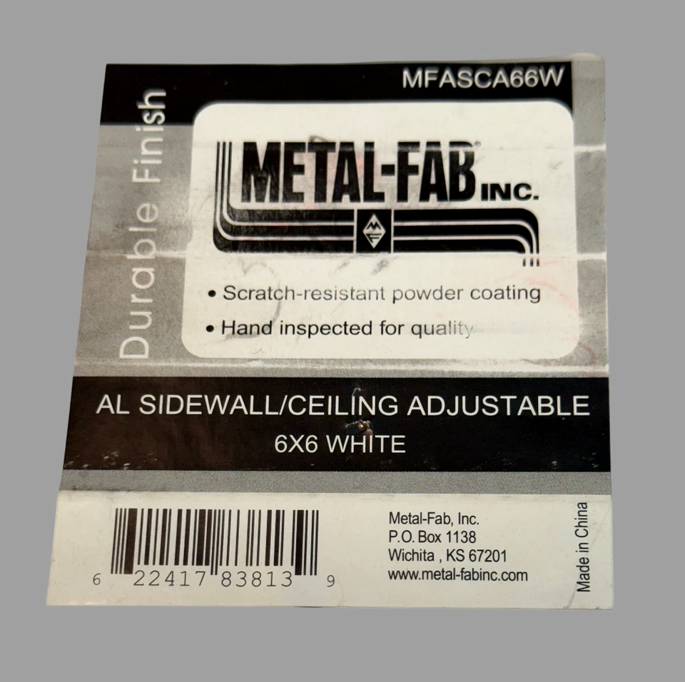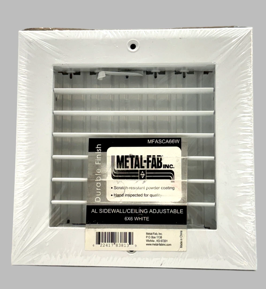Metal-Fab HVAC Grate 6 x 6" White Square MFASCA66W Sidewall Ceiling Adjustable
