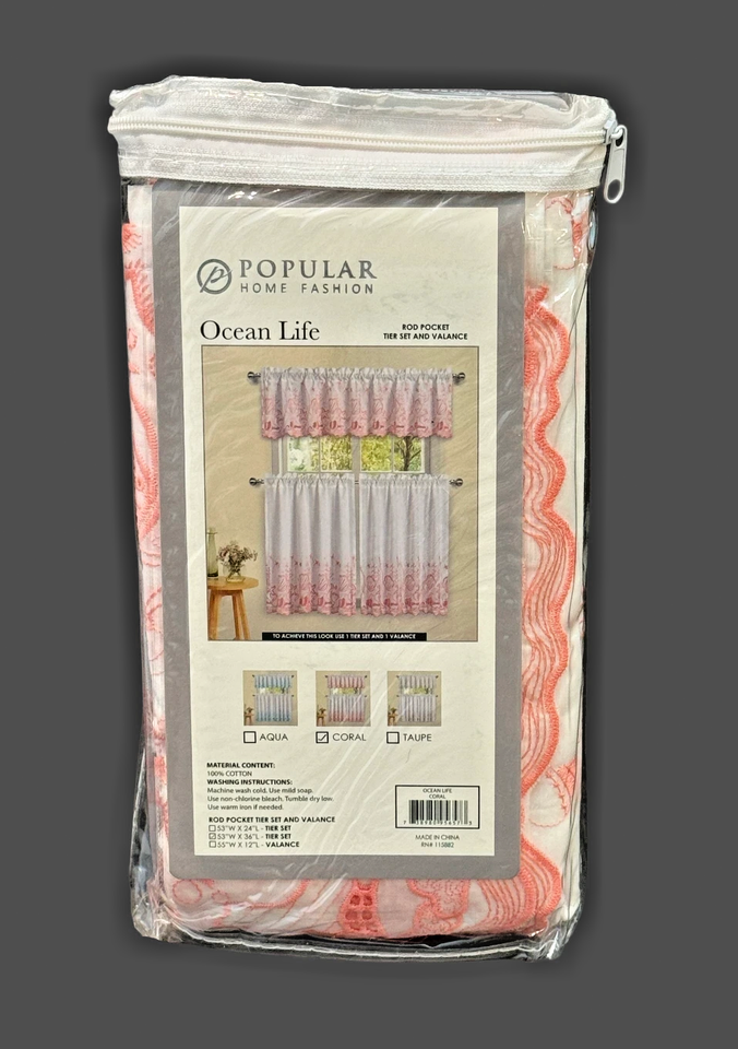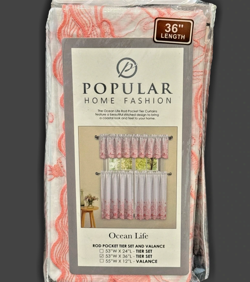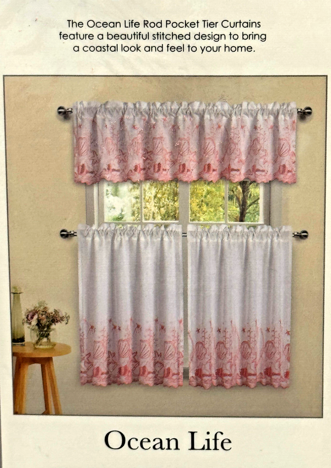 Popular Home The Ocean Life Rod Pocket Tier Set 53 x 36" Coral White 100% Cotton