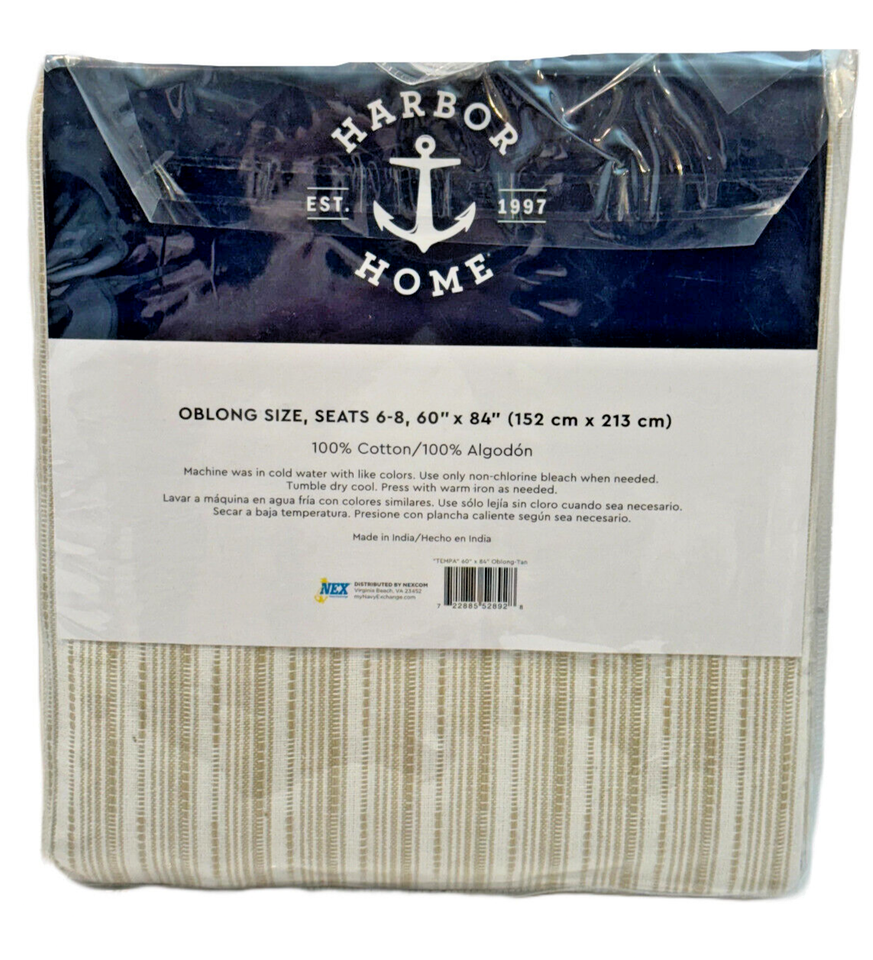 Harbor Home Tempa Tablecloth 60" x 84" Beige White Stripes 100% Cotton