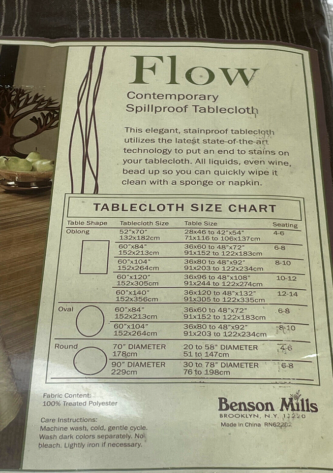 Benson Mills Flow Spillproof Tablecloth 60" and 35 similar items