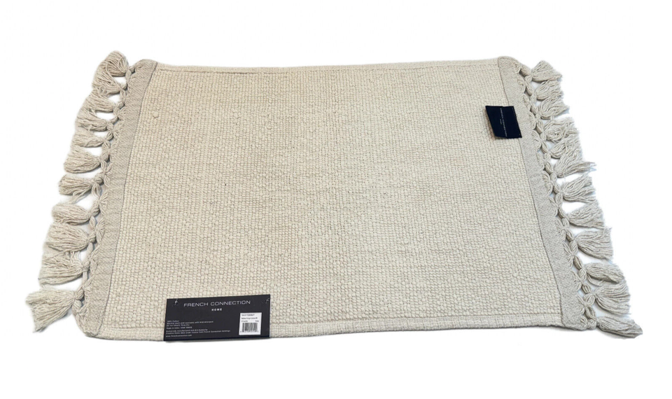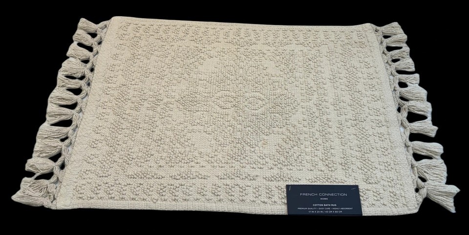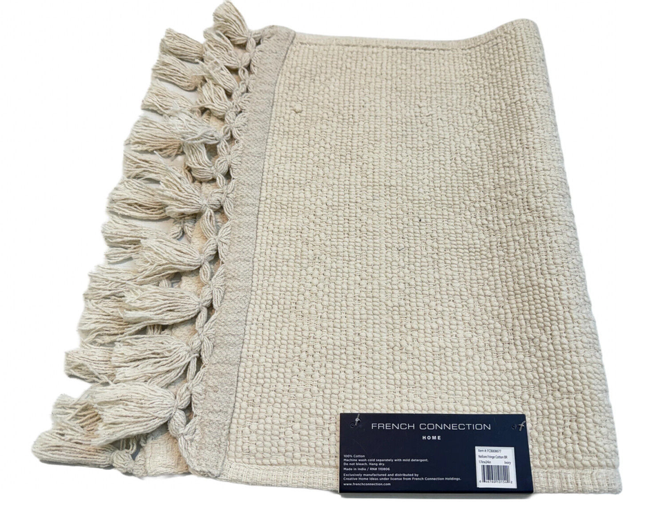 French Connection Nellore Fringe 100% Cotton Bath Rug Cream 17" x 24"