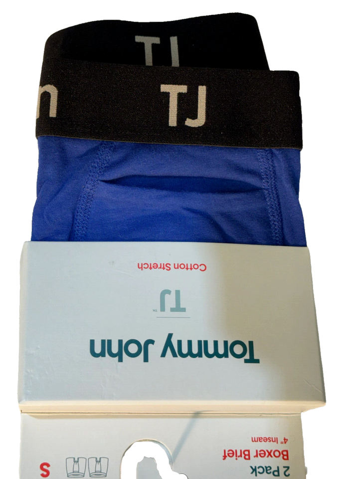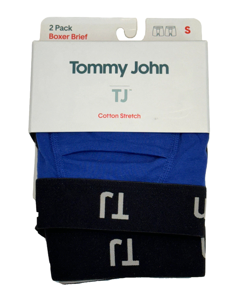 Tommy John Cotton Stretch Boxer Brief Pair (2) Men S (28-30) Blue Black Combo