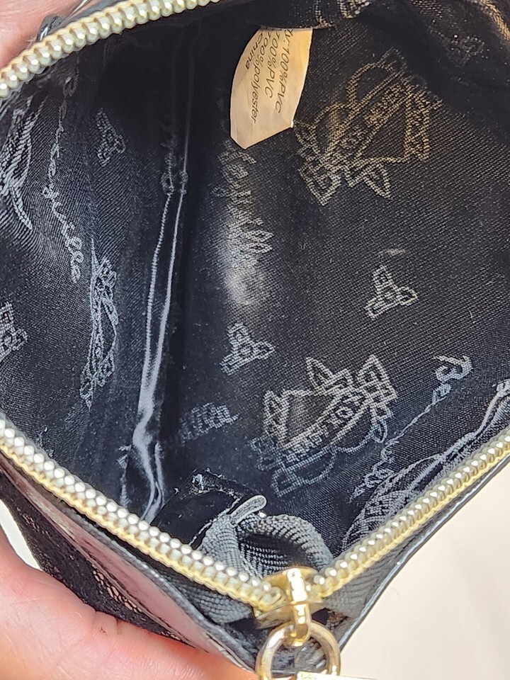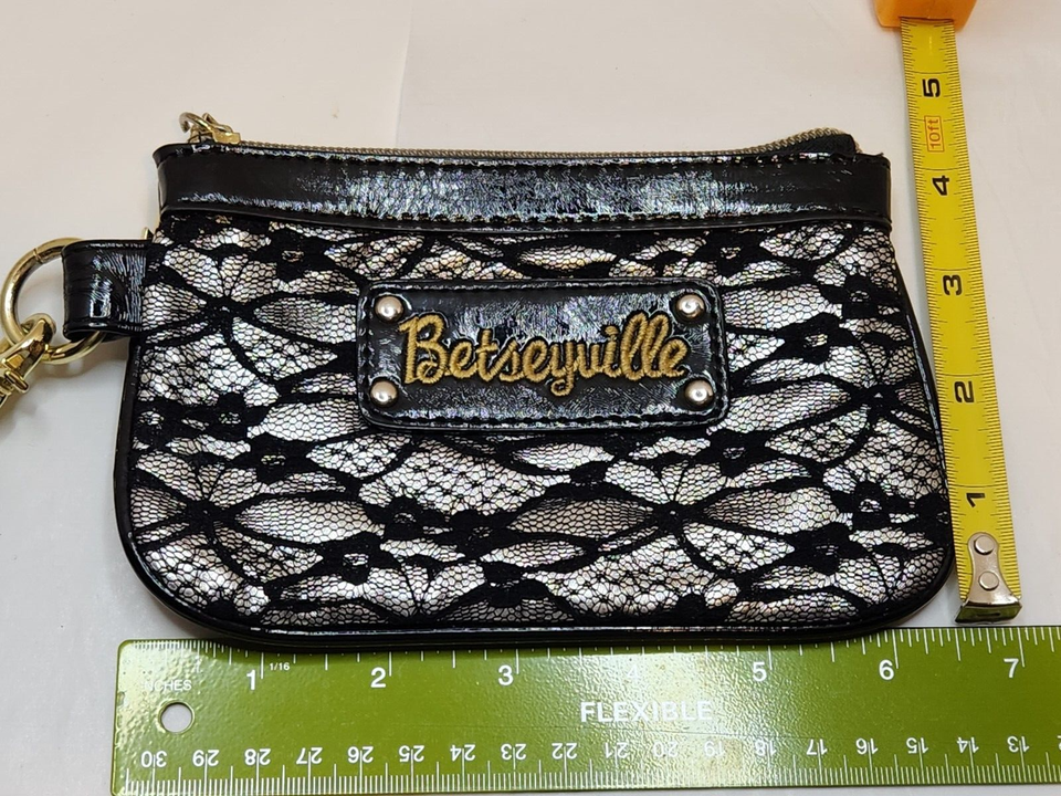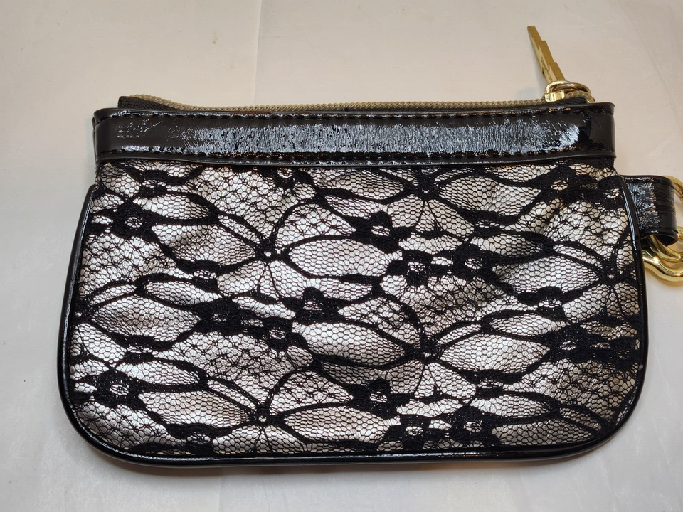 Betsey Johnson Black and Gold Patent Lace with Stud Detail Zip Wristlet