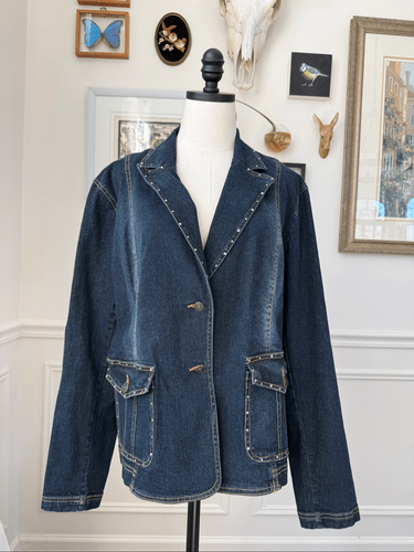 Lanie New York Women's Denim Rhinestone Blazer XL