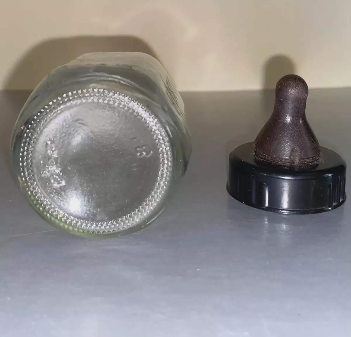 This baby bottle's glass is in great condition, with no chips or scratches.