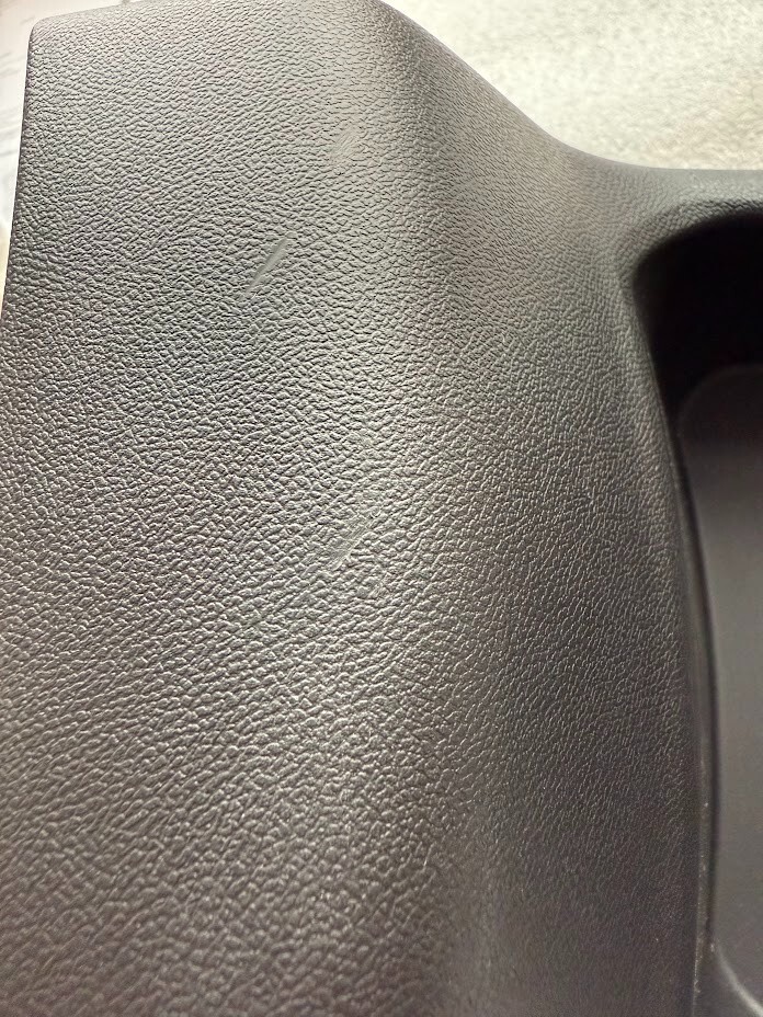 This console 'tail' has never been in a vehicle. It was removed from an assembly line leftover console. It is in good condition but does have some light blemishes, as seen in the pictures.