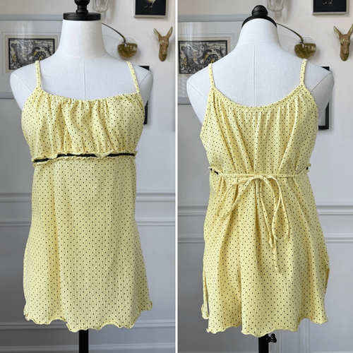Vintage Y2K Deb Yellow Polka Dot Empire Waist Tank Top Cami 2X