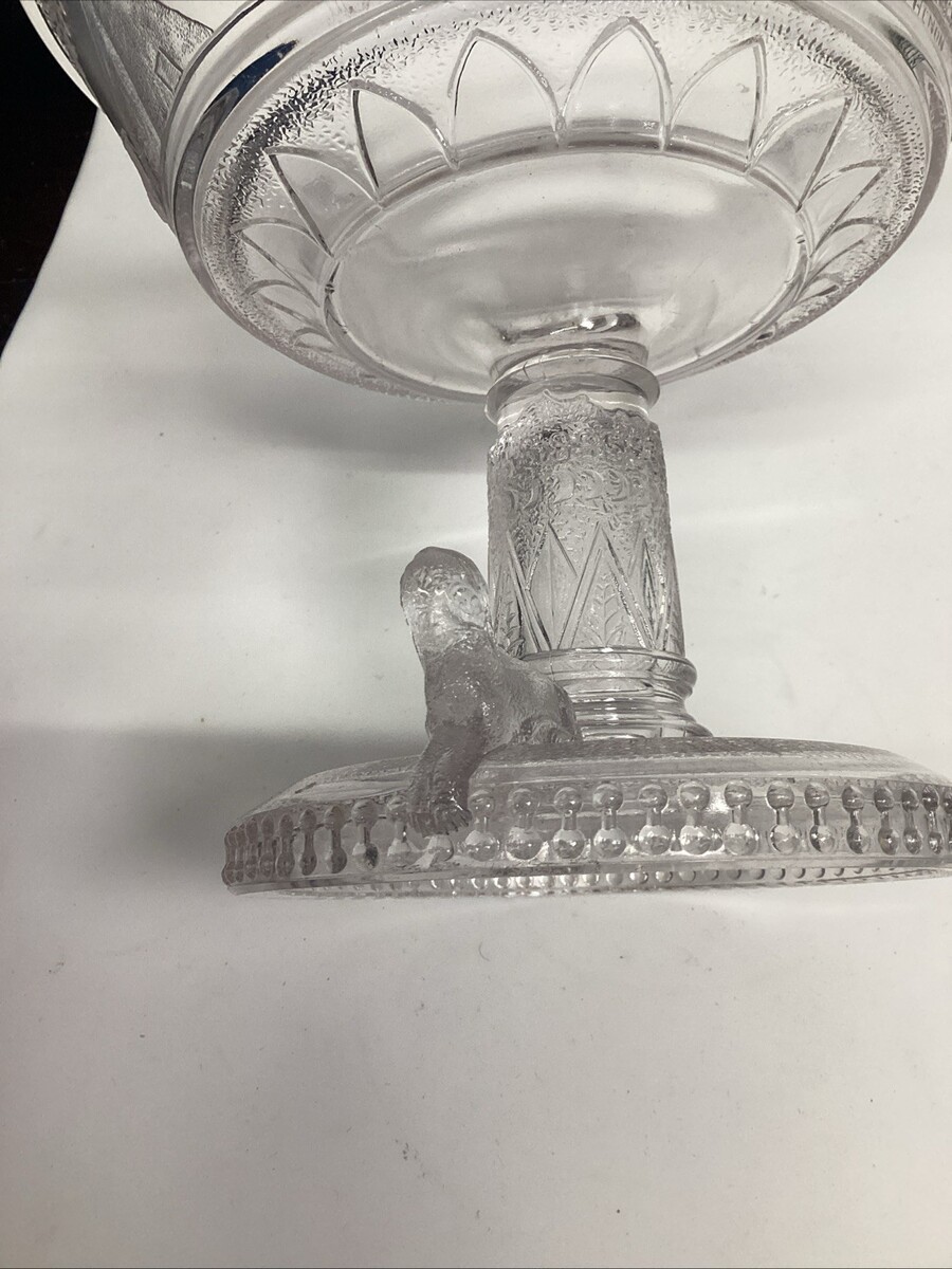 EAPG Adams Glass Co's Egyptian Oasis Pattern Covered Compote - Sphinx - 12”H