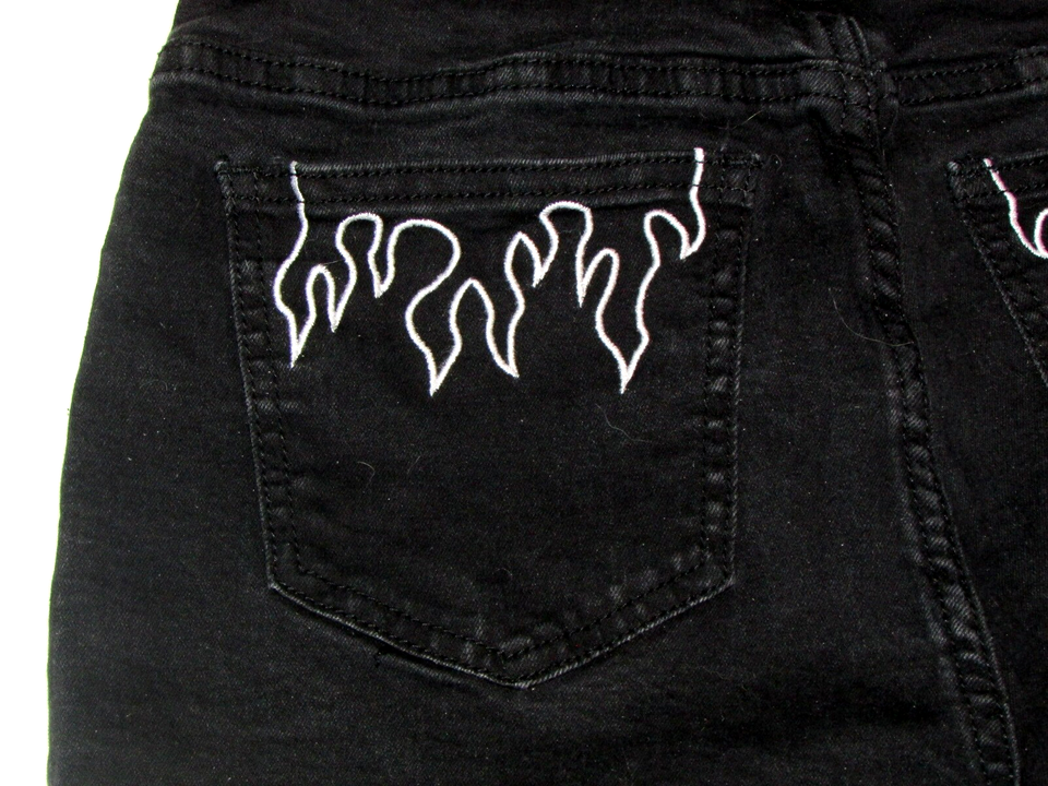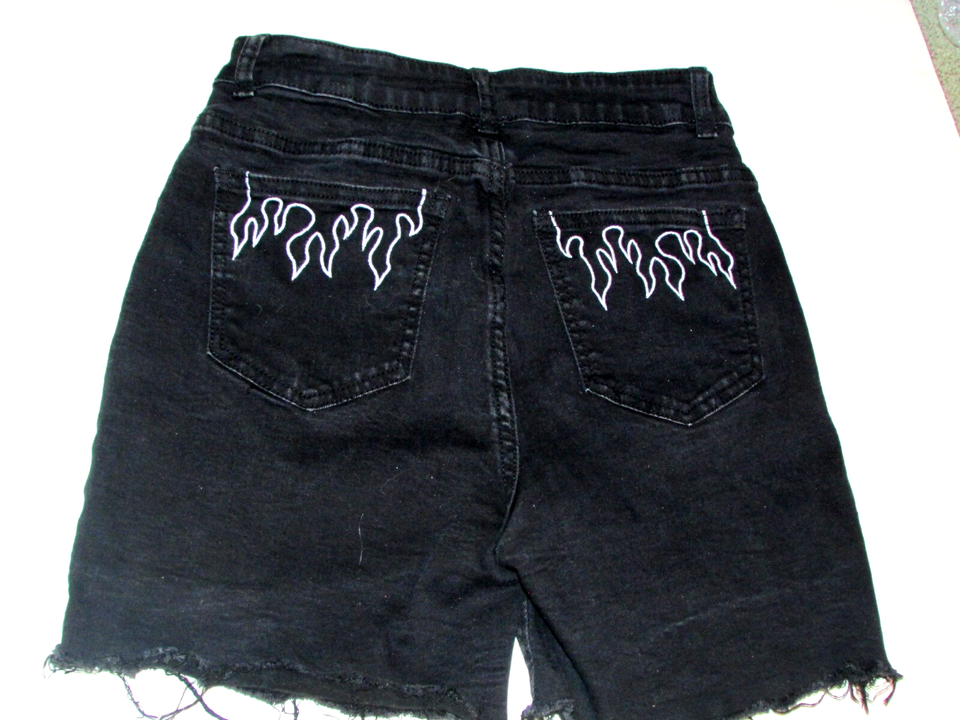 SHEIN Jean Shorts black Med white embroidered rear pockets ( )