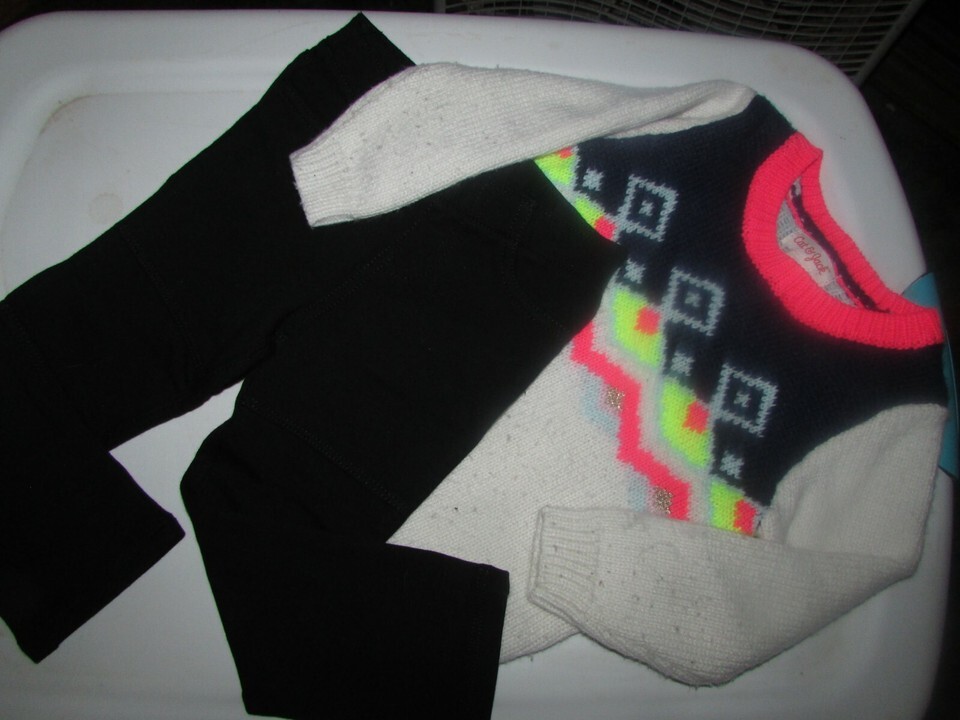 CAT & JACK girls PANTS black & SWEATER white black orange 2T (clo bx 2 - 6)