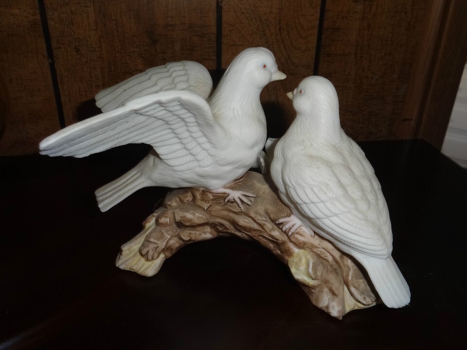 The figurine is perfect for bird lovers or 'lovers' and makes a great gift for someone special. It has been designed to be a decorative piece, and can be placed on a shelf, table, or fireplace to add a touch of elegance. This item is not handmade and has not been modified in any way.