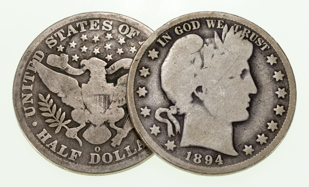 Lot of 2 Barber Half Dollars (1895-O and 1894) in Good Condition, Natural Color