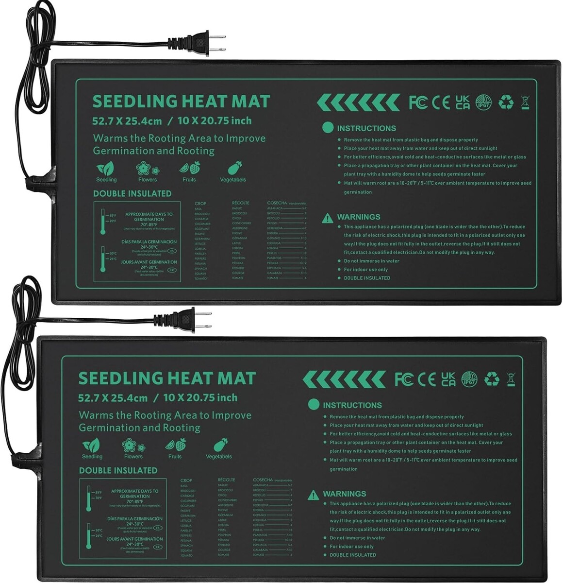 Uniform Heat Seedling Heat Mat Set – 10" x 20.75" for Thriving Indoor Plants