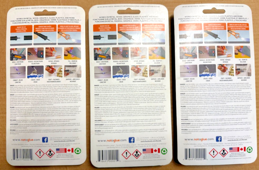 3-PACK Bondic Repair Anything 100% Non Toxic Liquid Plastic Welder - SK001