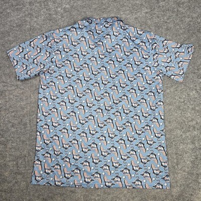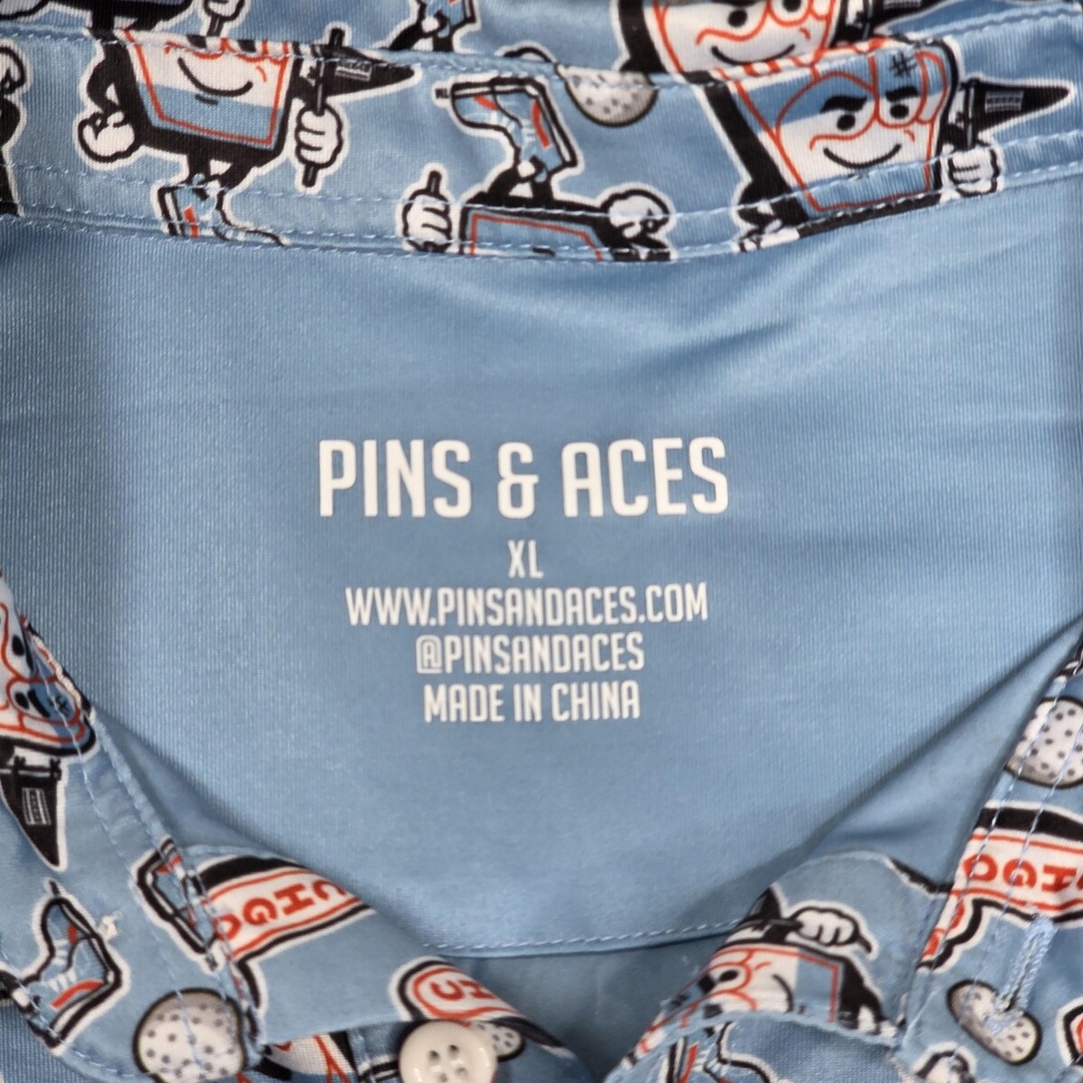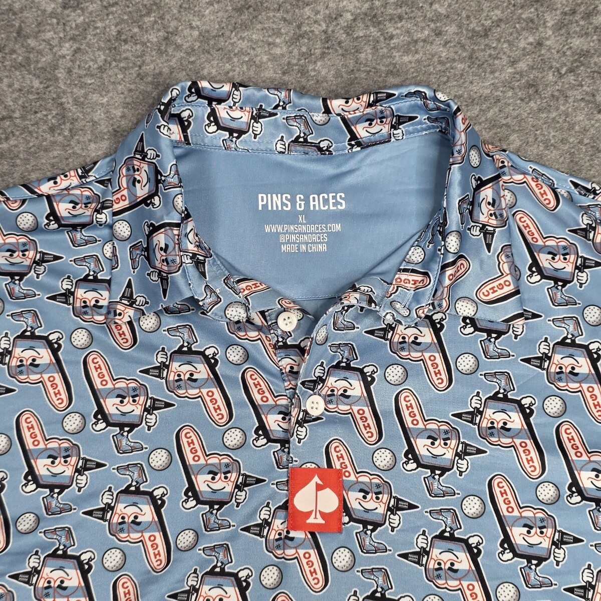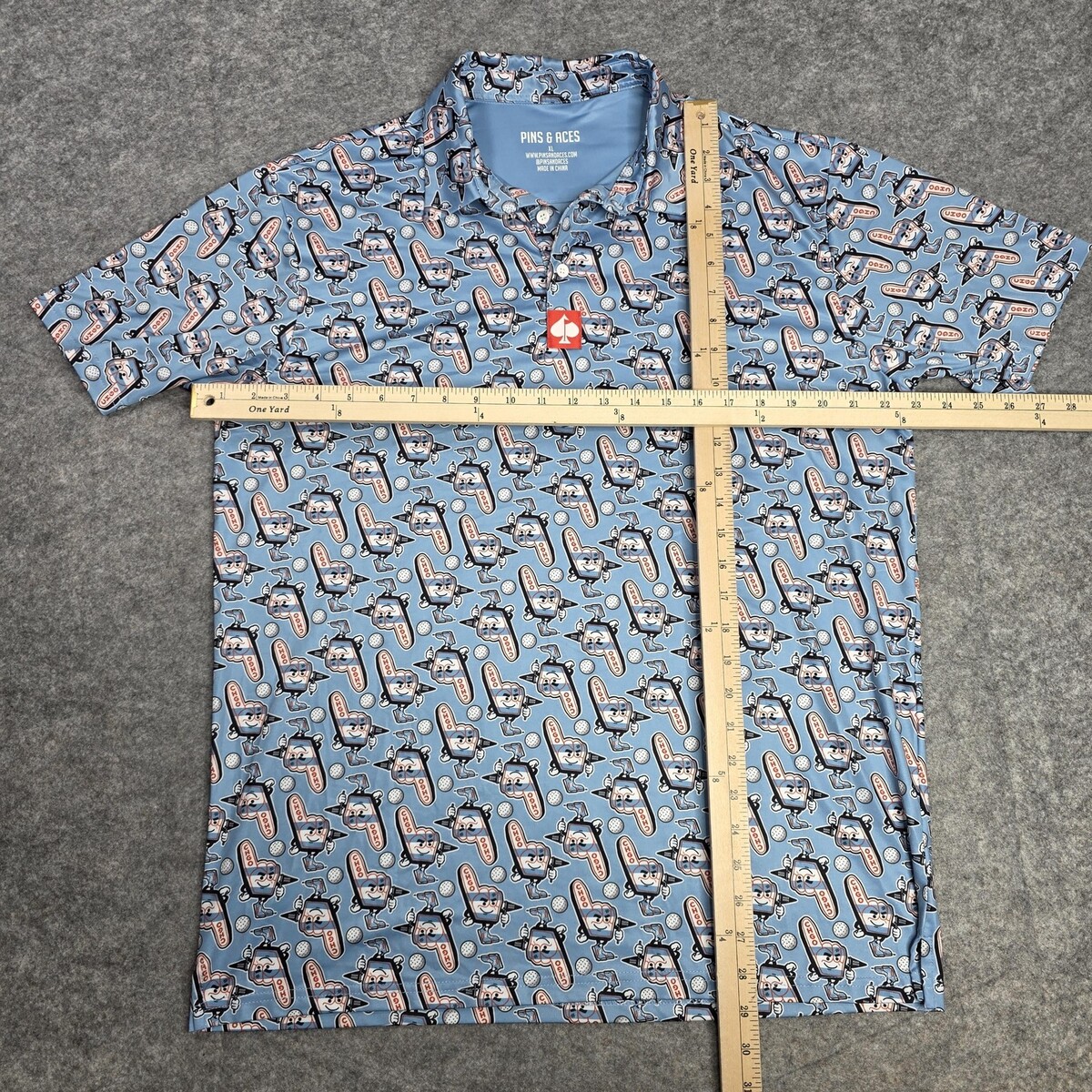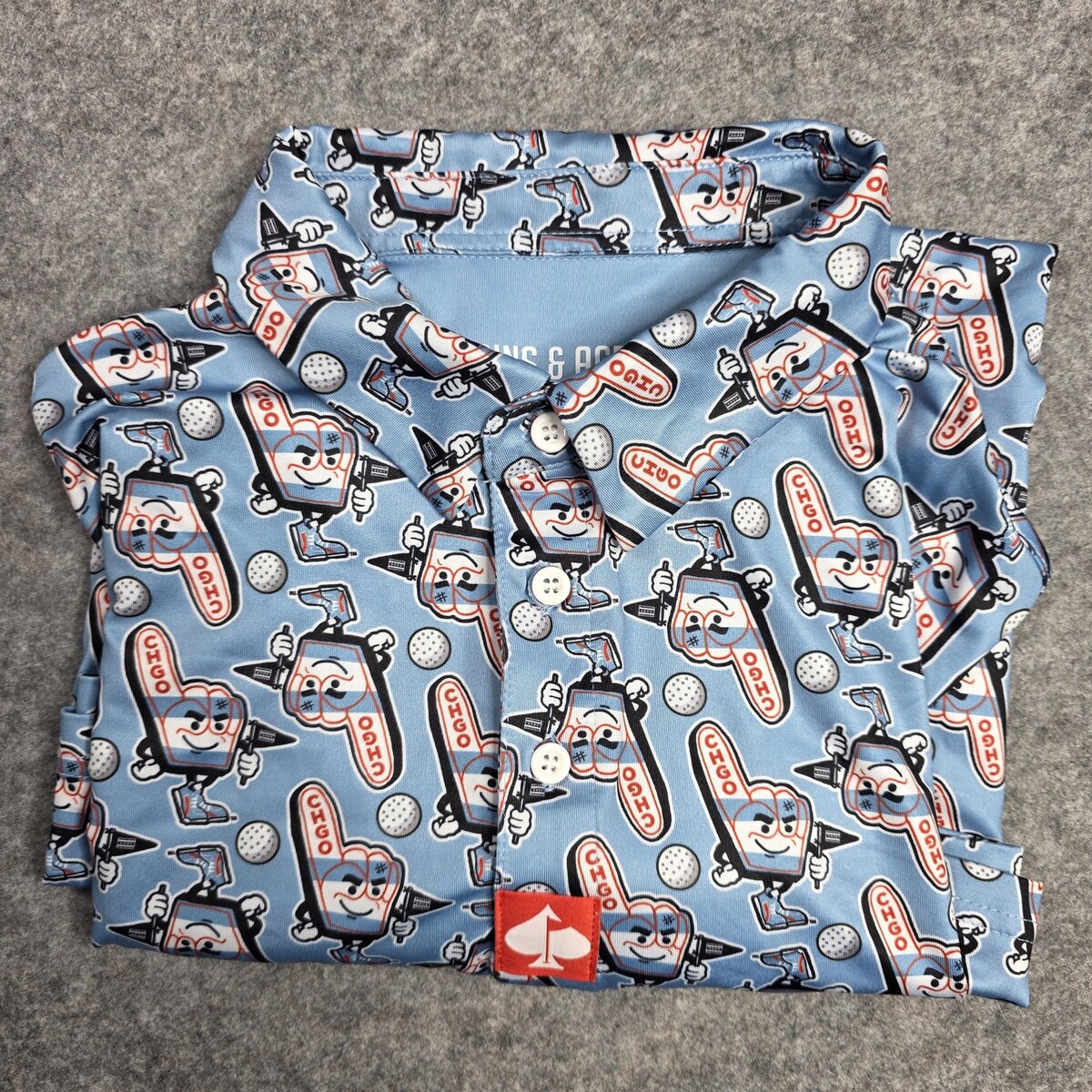 Pins & Aces Polo Shirt Mens XL Blue CHGO All Over Print Golf Performance Stretch