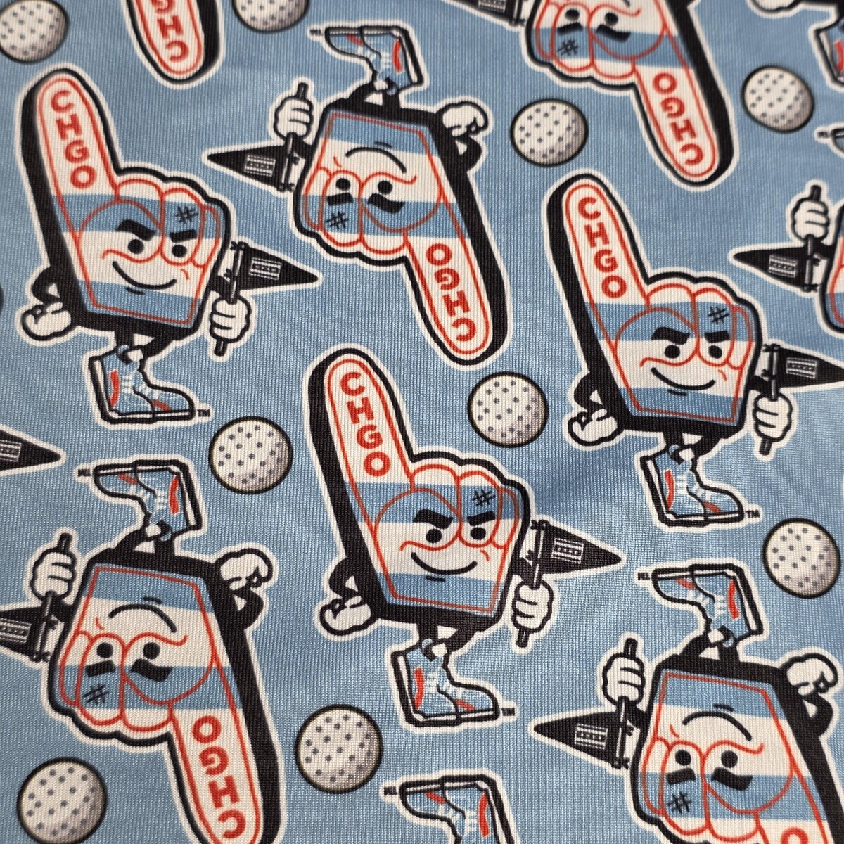 Pattern: Repeat CHGO foam finger mascot and golf balls all-over print