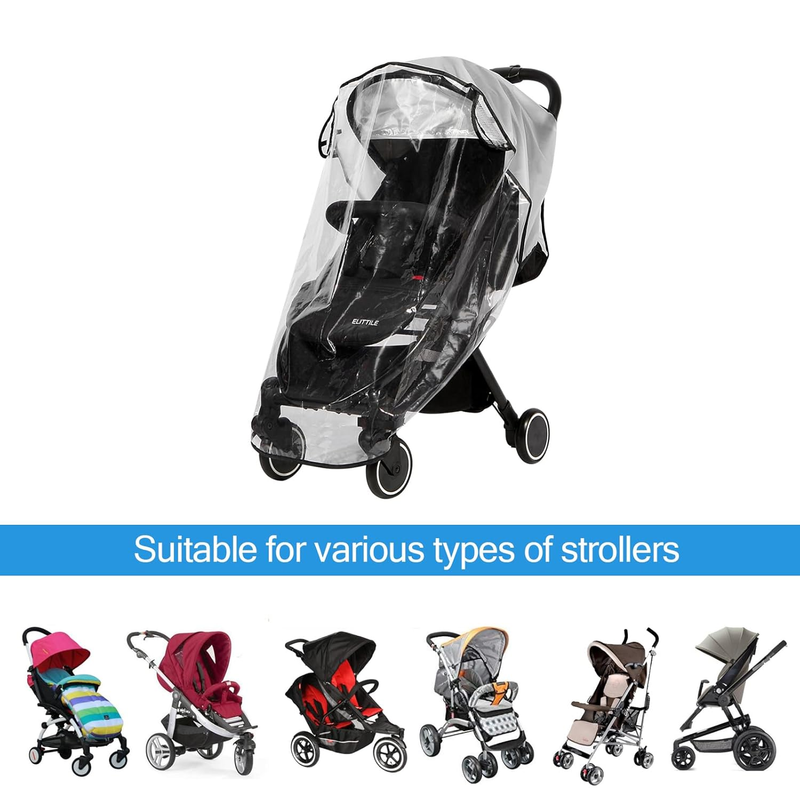 Our stroller rain cover is effortless to install and remove, saving you time and effort. It fits most single strollers, kids' pushchairs, pocket travel buggies, jogging strollers, prams, and more.