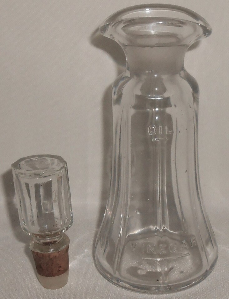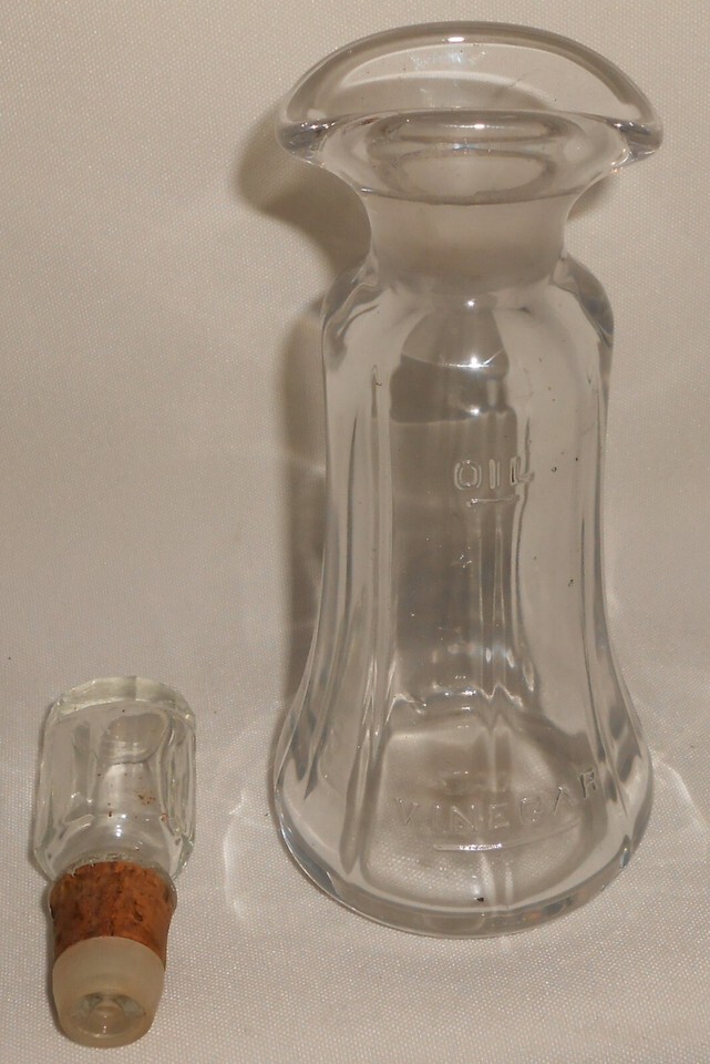 This is an early 1900s Combo Oil and Vinegar Bottle that has the embossed lettering OIL at top and VINEGAR at bottom. It measures approx 7 1/4" tall to top of bottle and approx 2 3/4" across at base. It is in good condition with no chips or cracks.
