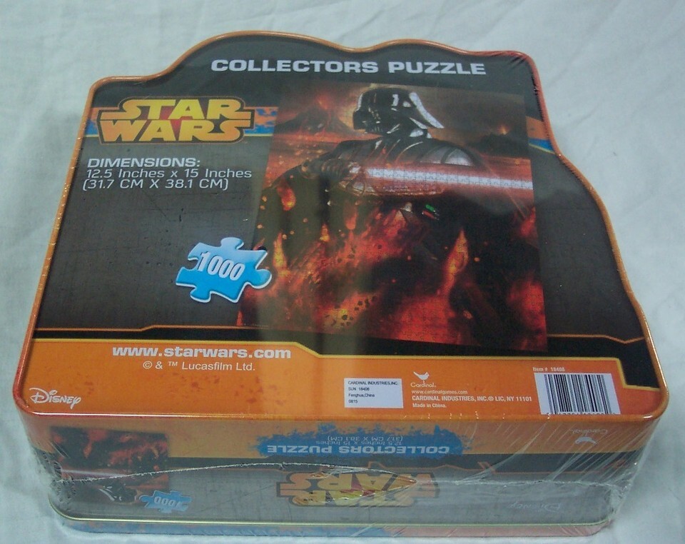 This is a STAR WARS DARTH VADER 1000 Piece PUZZLE w/ COLLECTOR'S TIN. Made by Cardinal It is NEW in the shrinkwrap. Puzzle is 12.5 inches by 15 inches in size. Winning bidder to e-mail within 3-days and payment to be received within 10-days.