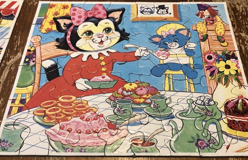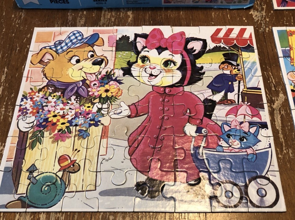 Vintage 1979 Milton Bradley TRIO PUZZLES Children PUZZLE Set of 3 Mother Cat Dog
