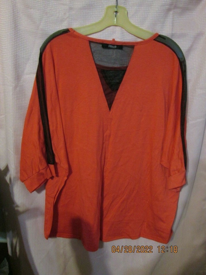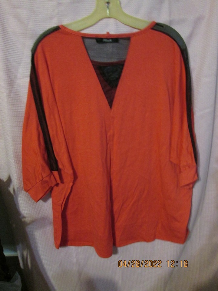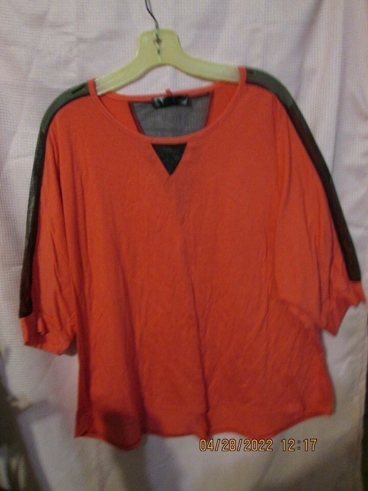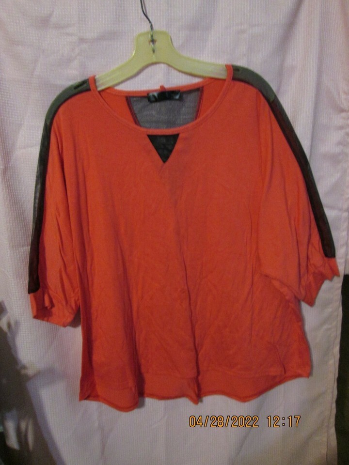 Red and Black Mesh Knit Shirt Top Stretch used size about L. Thank you and GOD BLESS.