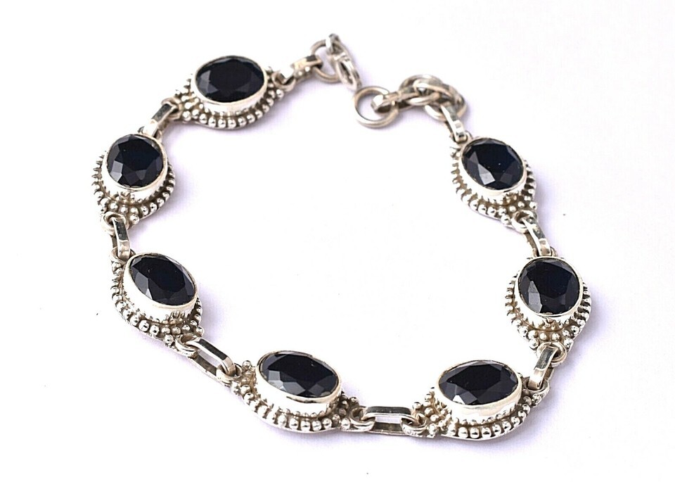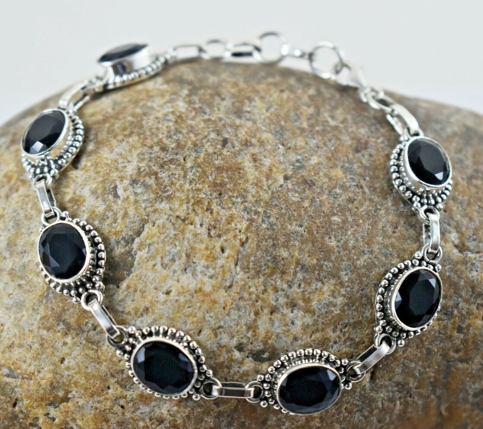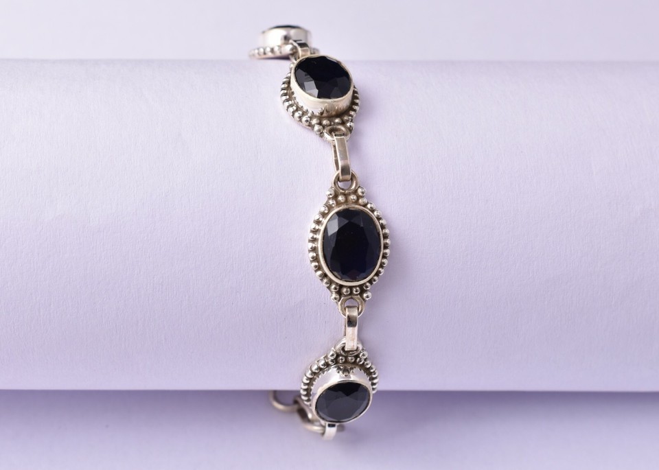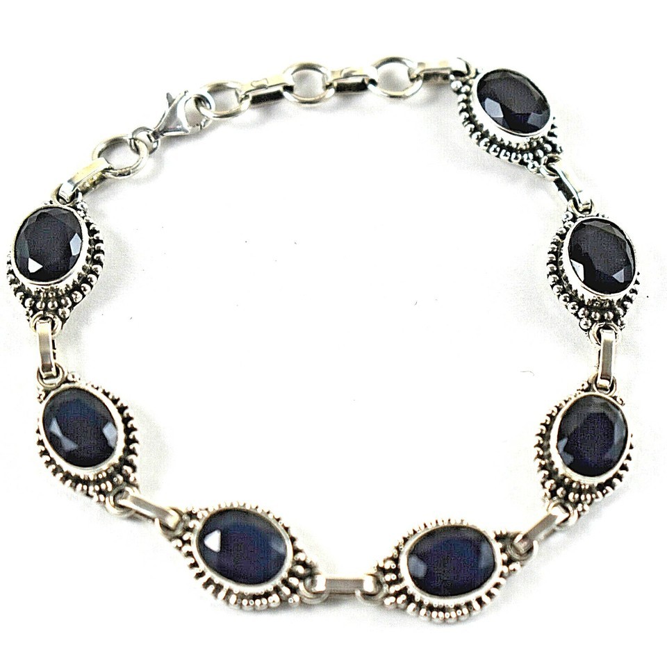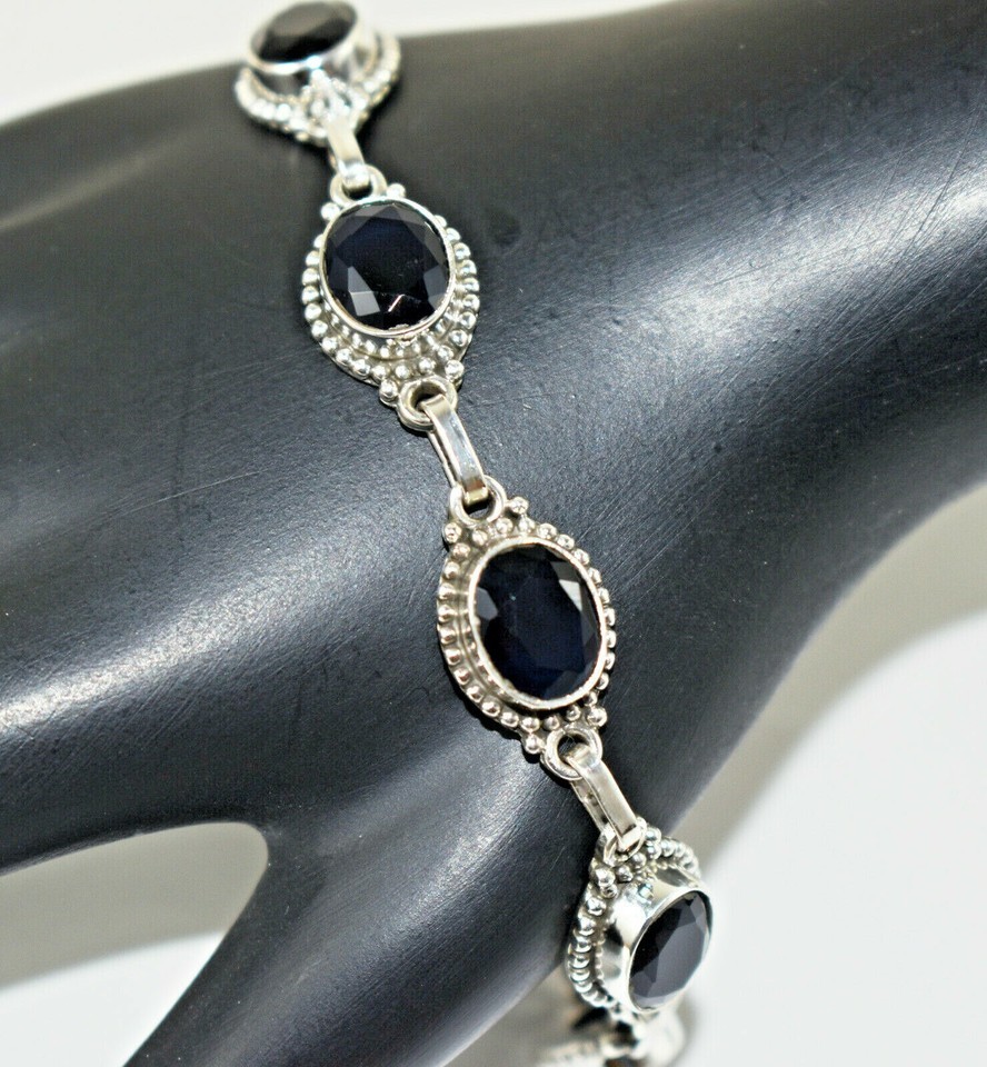 925 Solid Silver Natural Sapphire Gemstone Handmade Link Bracelet Casual Wear BS