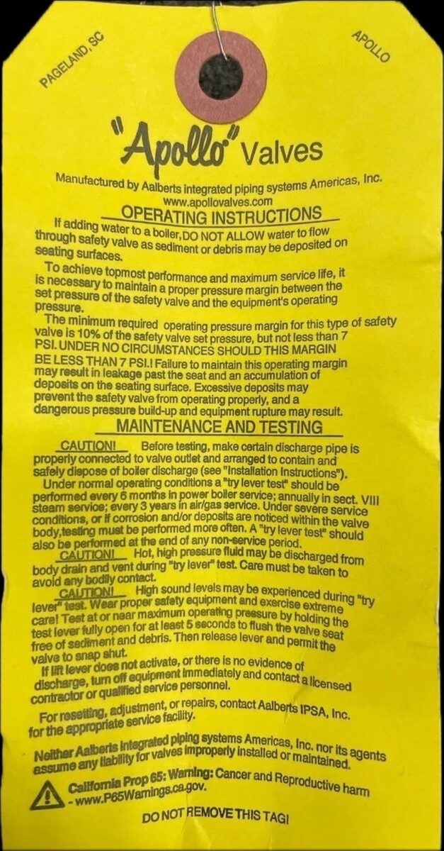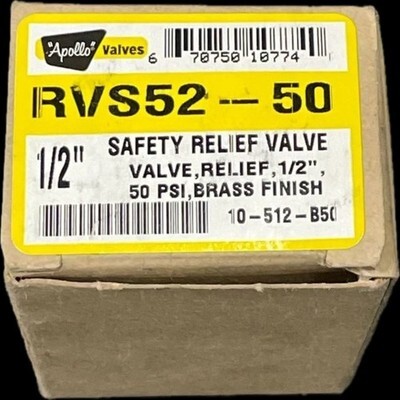 The APOLLO VALVES RVS52-50 Safety Relief Valve is a high-quality brass valve designed for industrial use. With a 1/2" size and rated at 50 psi, this valve is a reliable component for hydraulic, pneumatic, and plumbing systems. Manufactured by Apollo Valves, a trusted brand in the industry, this unit ensures safety and control in various applications. Perfect for businesses looking for a durable and efficient relief valve solution.
