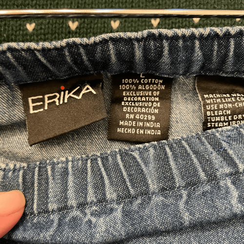Penelope Rose blue chambray tiered ruffle maxi skirt with stretchy smocked waist. 100% lyocell. Tag size large. Laying flat measures 11 inches across the waist stretching to 17 inches without much resistance and 39 inches long.