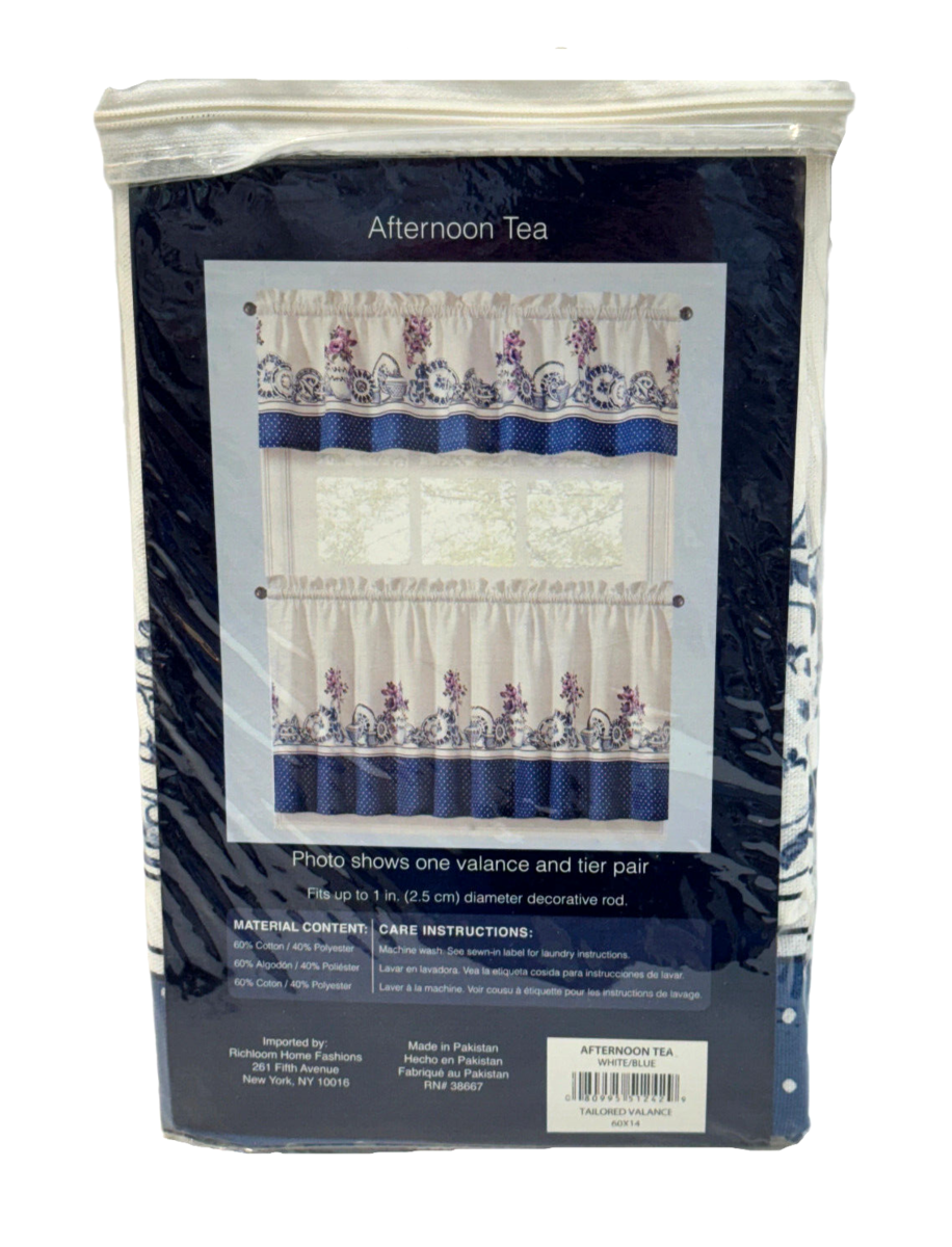 Richloom Afternoon Tea Tailored Valance 60" x 14" White Blue Cotton Blend