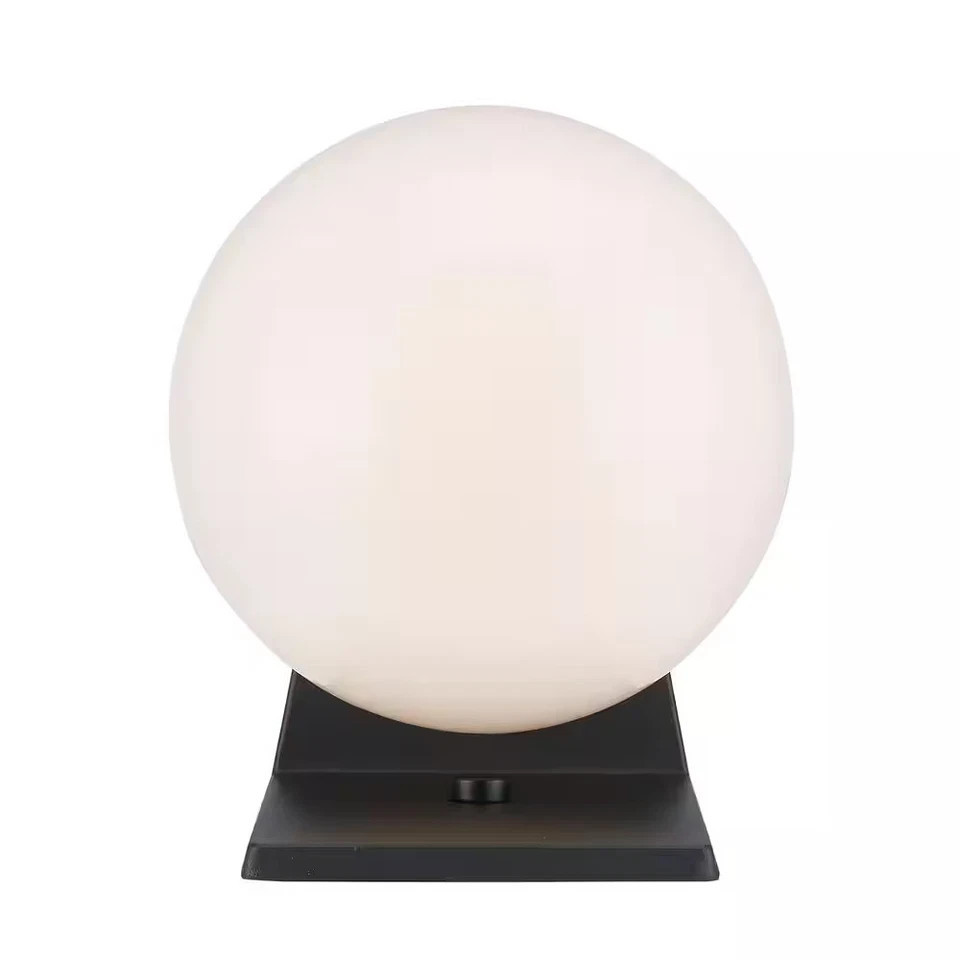 This 7 in. Black Lantern offers functional outdoor wall lighting with retro, mid-century modern appeal. The single light wall sconce features a classic black finish contrasted with an opal white glass shade in the shape of a globe. The globe shade twists and locks into the metal housing, ensuring a secure fit to hold up in harsh weather conditions. A 60-watt bulb is housed inside the glass and an LED bulb can be used for energy efficiency (sold separately). The minimalist style and classic finish choices lends well to nearly any style home, from traditional to modern. Mount this exterior wall light in porch entryways, along walkways, or on either side of a garage door to illuminate your homes driveway at night.