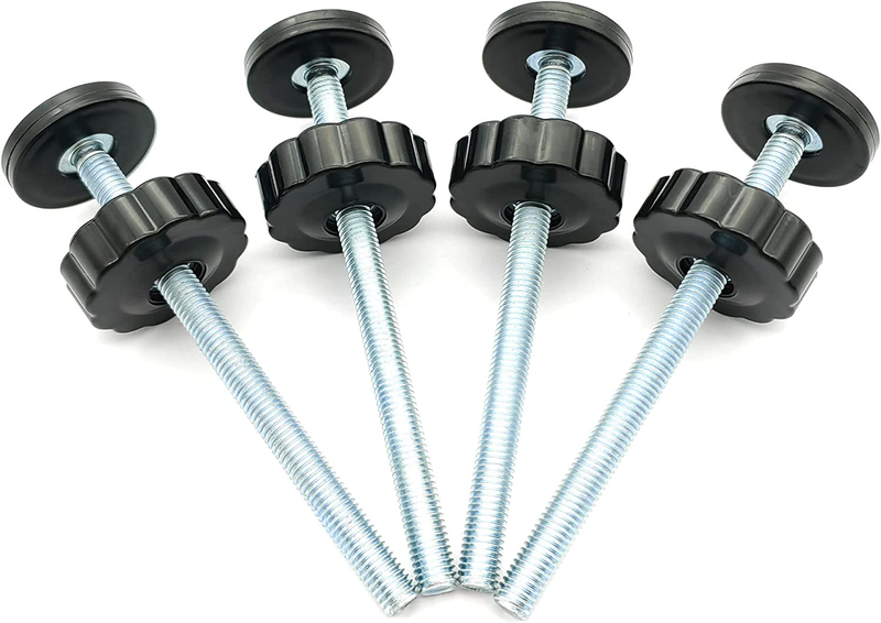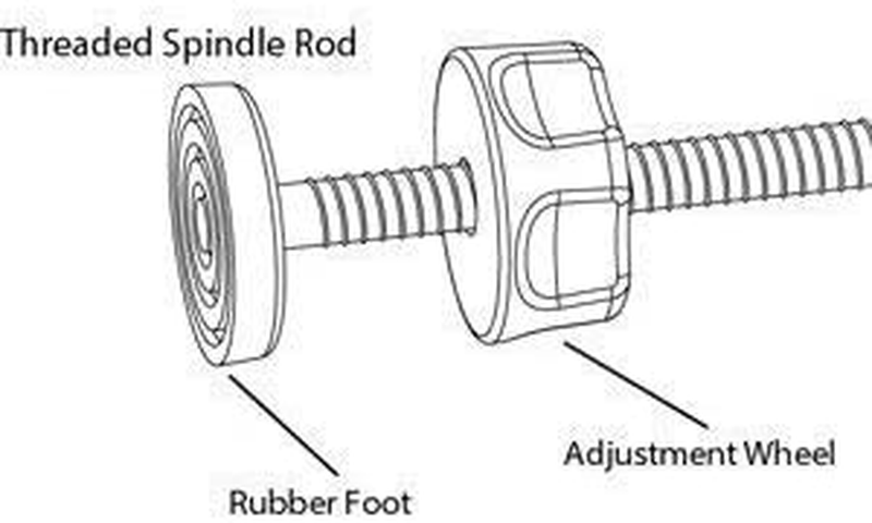 Each threaded spindle rod (bolts) have adjustment wheel and rubber foot.