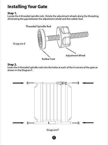 Position the gate so that it is level and centered within your doorway or opening. Rotate the adjustment wheels on the threaded spindle rods in the opposite direction at in Step1, expanding the gap between the rubber foot and the adjustment wheel. Expand each of the 4 threaded spindle rods until they make contact with the doorway or opening. Do not fully tighten the threaded spindle rods yet.
