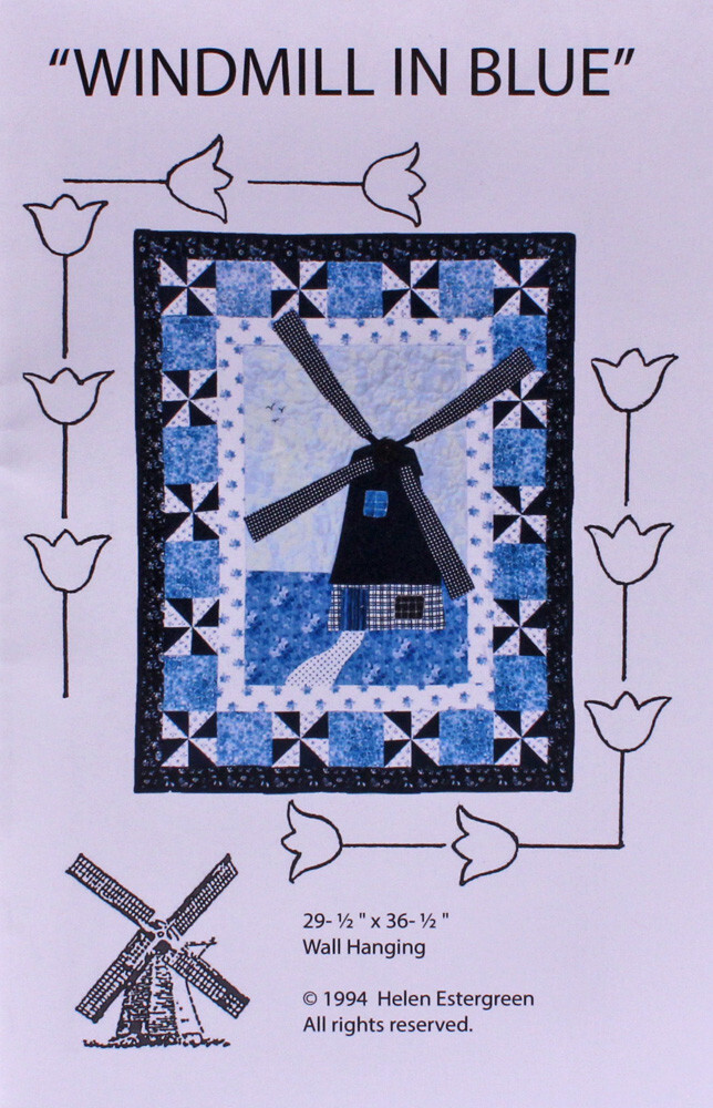 Windmill in Blue Dutch Windmill Wall-hanging Quilt Pattern M204.01