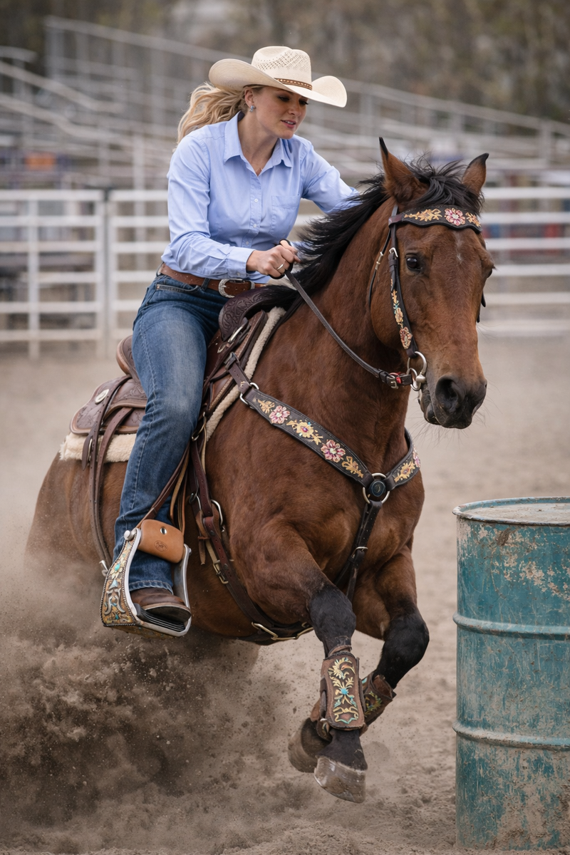 Western Copper Engraved Floral Turquoise Rhinestone Barrel Racing Aluminum