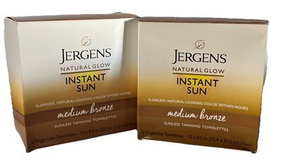 2 Boxes Jergens NaturalGlow InstantSun MediumBronze Tanning 12 Sealed Towelettes