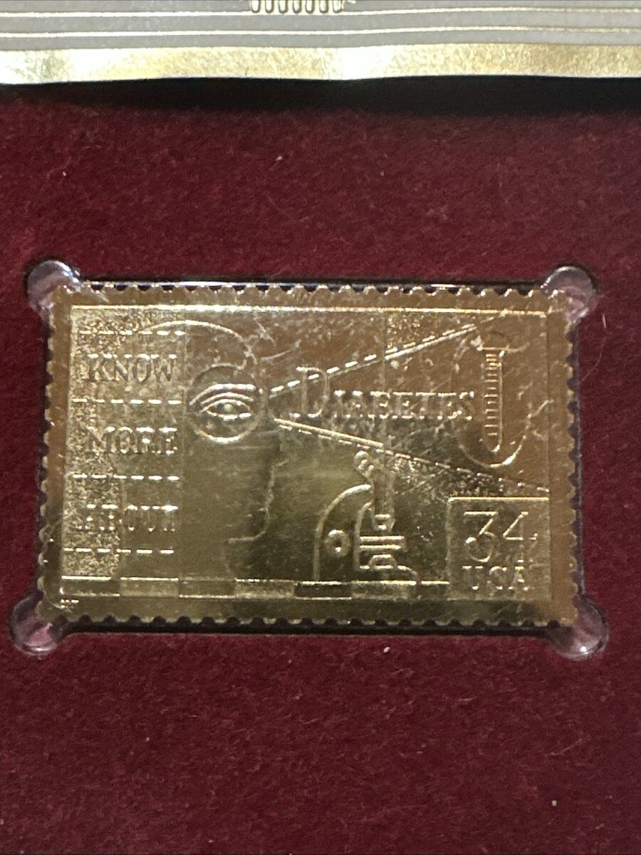 2001 Diabetes Awareness Promoting Detection Replica 22kt Gold Golden Cover Stamp