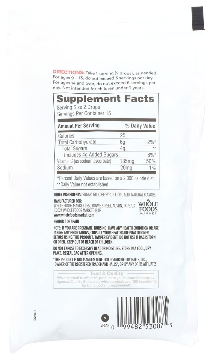 (3 Bags) 365 by Whole Foods Market, Vitamin C Lozenges, 30 Count EXP 2/2028