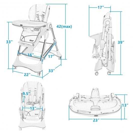 Made of high-qualified material Equipped with a sturdy and durable construction Provide you with extra large space for using freely 7 Adjustable height is suitable for various height tables Has a stable and secure support for preventing babies from slipping off 5 Point safty haness for keeping baby right on place and safe Easy to fold and carry