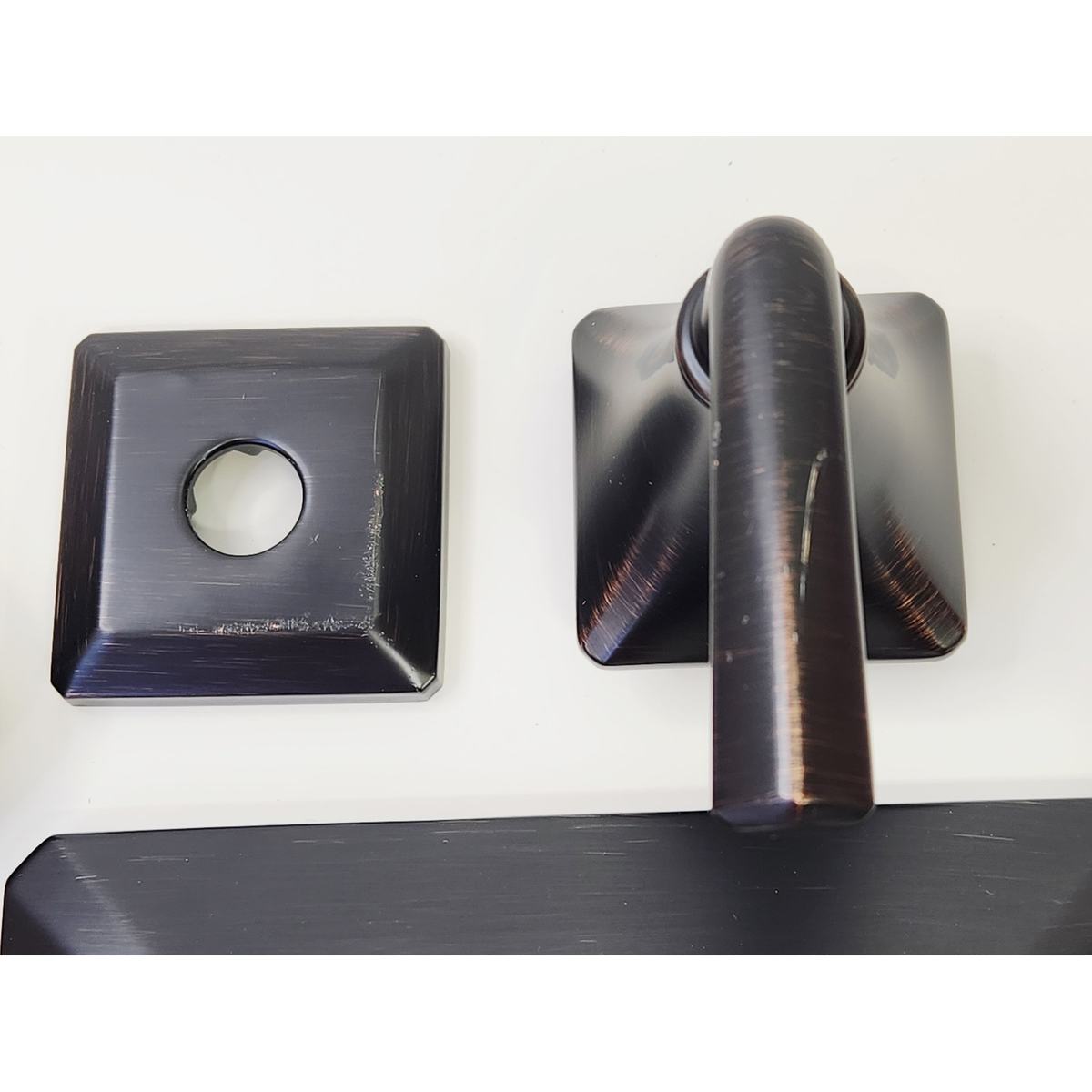 NOTE: As shown in the pictures, the handle and the shower arm flange have some scratches. We have adjusted our price for this flaw.