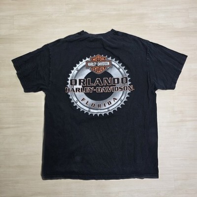 Harley Davidson Orlando Florida Skull Men Black Shirt Skull Gear Size XL