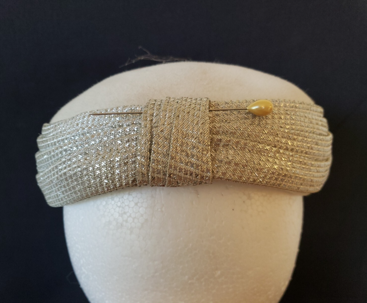 Simple and chic 50s hat with a silver lame outer wrap. Slightly reminiscent of a turban