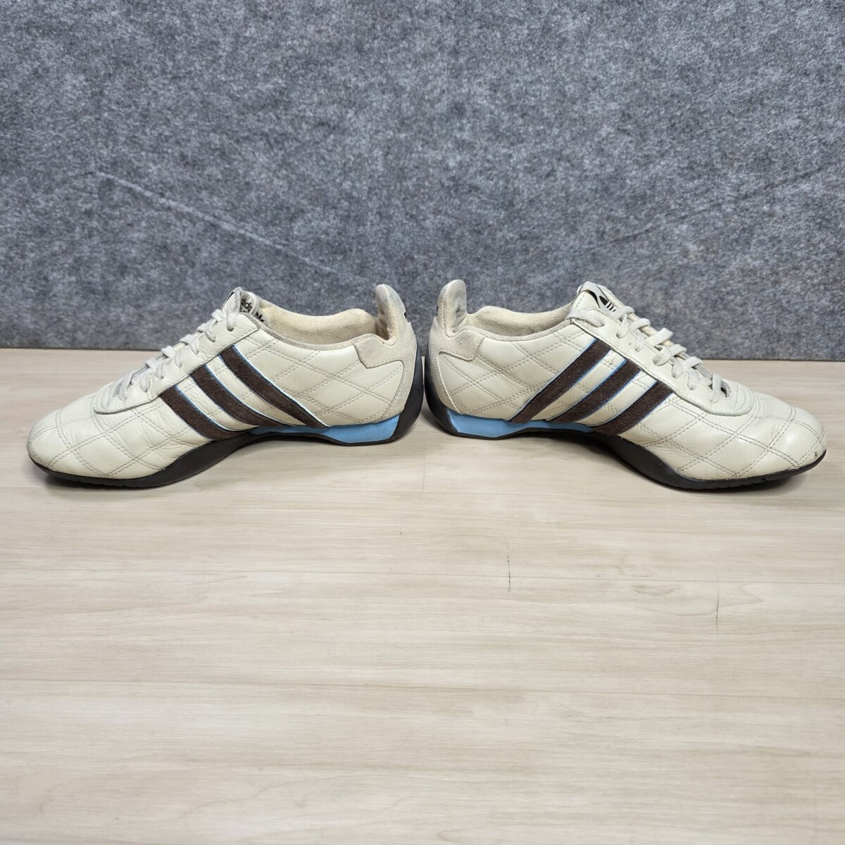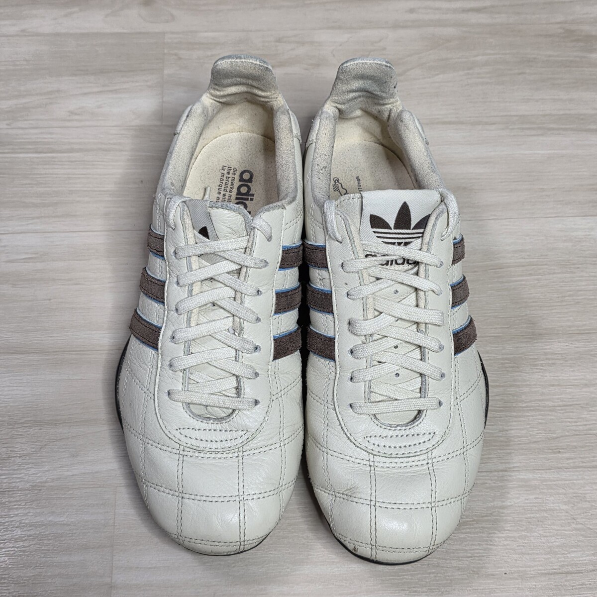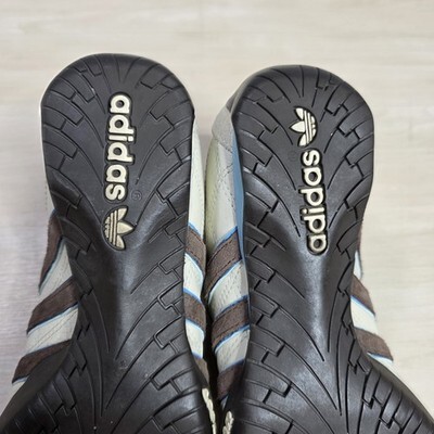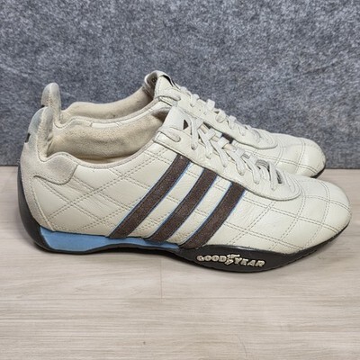 Adidas Tuscany Goodyear Racing Driving Shoes White Blue Brown Stripe Size 6