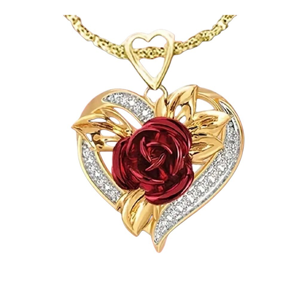 Ce pendentif rose rouge avec strass est un collier elegant comportant un pendentif en forme de c?ur orne de strass blancs. La combinaison du motif rose rouge et des strass etincelants ajoute une touche de romantisme et de glamour a n'importe quelle tenue. Fabrique dans un materiau de haute qualite, ce collier pendentif est un accessoire a la mode qui peut etre porte a diverses occasions pour rehausser votre look.