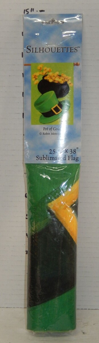 For Sale is a Silhouettes Sublimated Garden Flag POT OF GOLD St. Patrick's Day. it in good condition as seen in the pictures provided what you see is what you will receive. Please ask Any and All Questions prior to purchasing. Fast Same or Next day shipping with Free Delivery Confirmation within the U.S. Payment Due within 7 days of purchase (if you need more time please let us know In advance) we love to combine shipping is always a Yes and Most of the time Additional Items Ship for free.