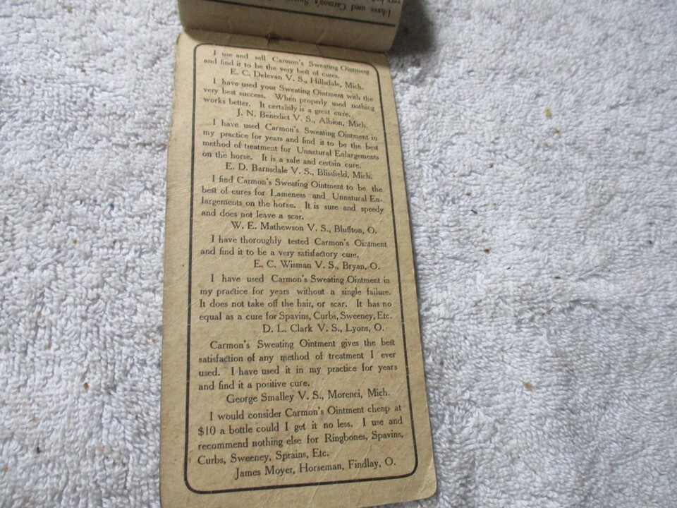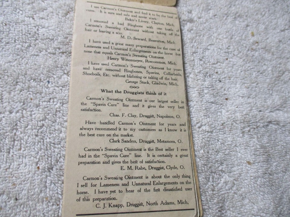 Vintage Carmons Spavin Cure Advertising Print brochure Clyde ohio early 1900s