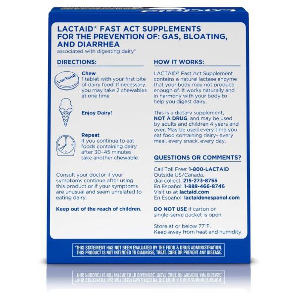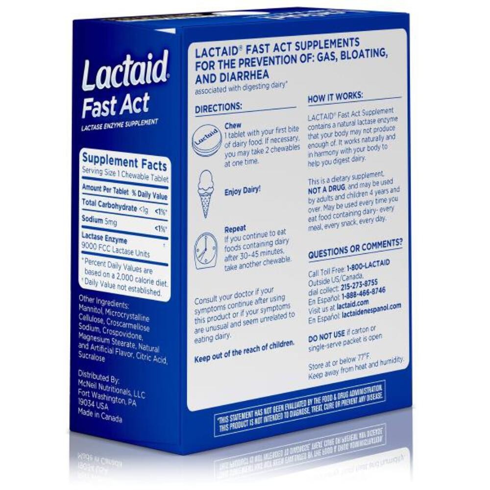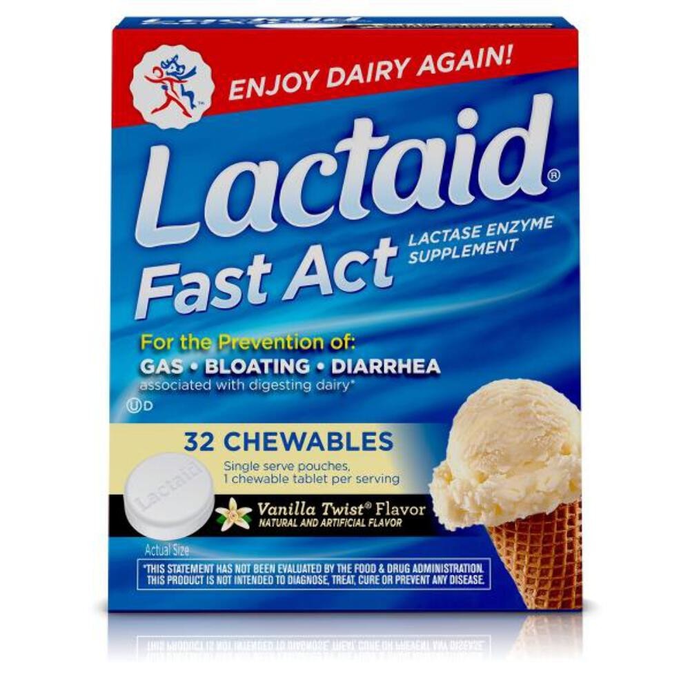 Missing Boxes Expiration Date of 10/2027 ? 32-count single-dose travel packs of Lactaid Fast Act Lactose Intolerance Chewables with Vanilla Twist flavor help prevent gas, bloating and diarrhea associated with lactose intolerance ? Formulated with 9000 FCC lactase units of lactase enzymes, these chewable tablets break down milk sugar to help reduce discomfort from dairy sensitivity due to lactose ? Featuring a smooth Vanilla Twist flavor, this dairy digestive aid is certified Kosher and is suitable for both adults and children, ages 4 and up ? Offered in convenient, individually-wrapped packaging, these lactose intolerance caplets are ideal for travel and on-the-go ? The fast-acting formula of the lactase pills starts working with your first bite or sip of dairy, so you can enjoy your meal with confidence