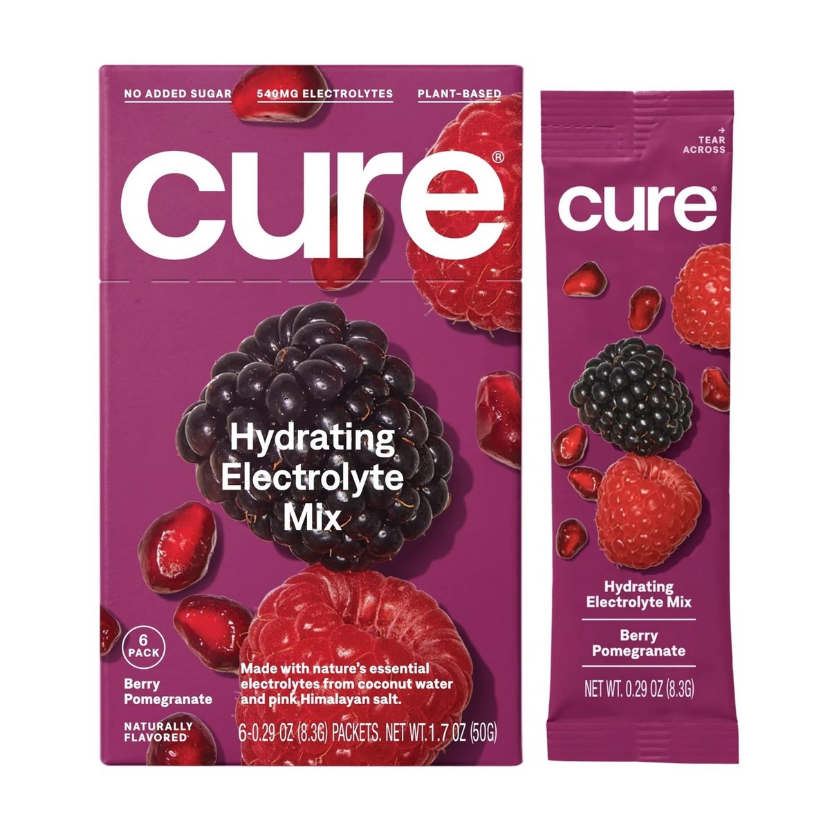 (2) Cure Hydration | Plant-Based Electrolyte Box of 8 Packets Berry Pomegranate