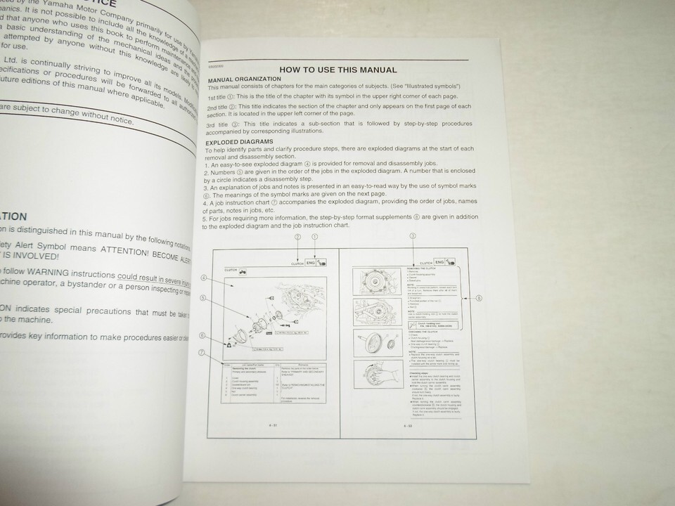 Informatif avec illustrations, COUVRE DES INFORMATIONS LIMITEES, aucune page manquante, illustrations/schemas eclates, excellent manuel a avoir lorsque vous possedez une YAMAHA et permettra a votre YAMAHA de fonctionner. Ce manuel vous fera economiser de l'argent en reparations/entretien.